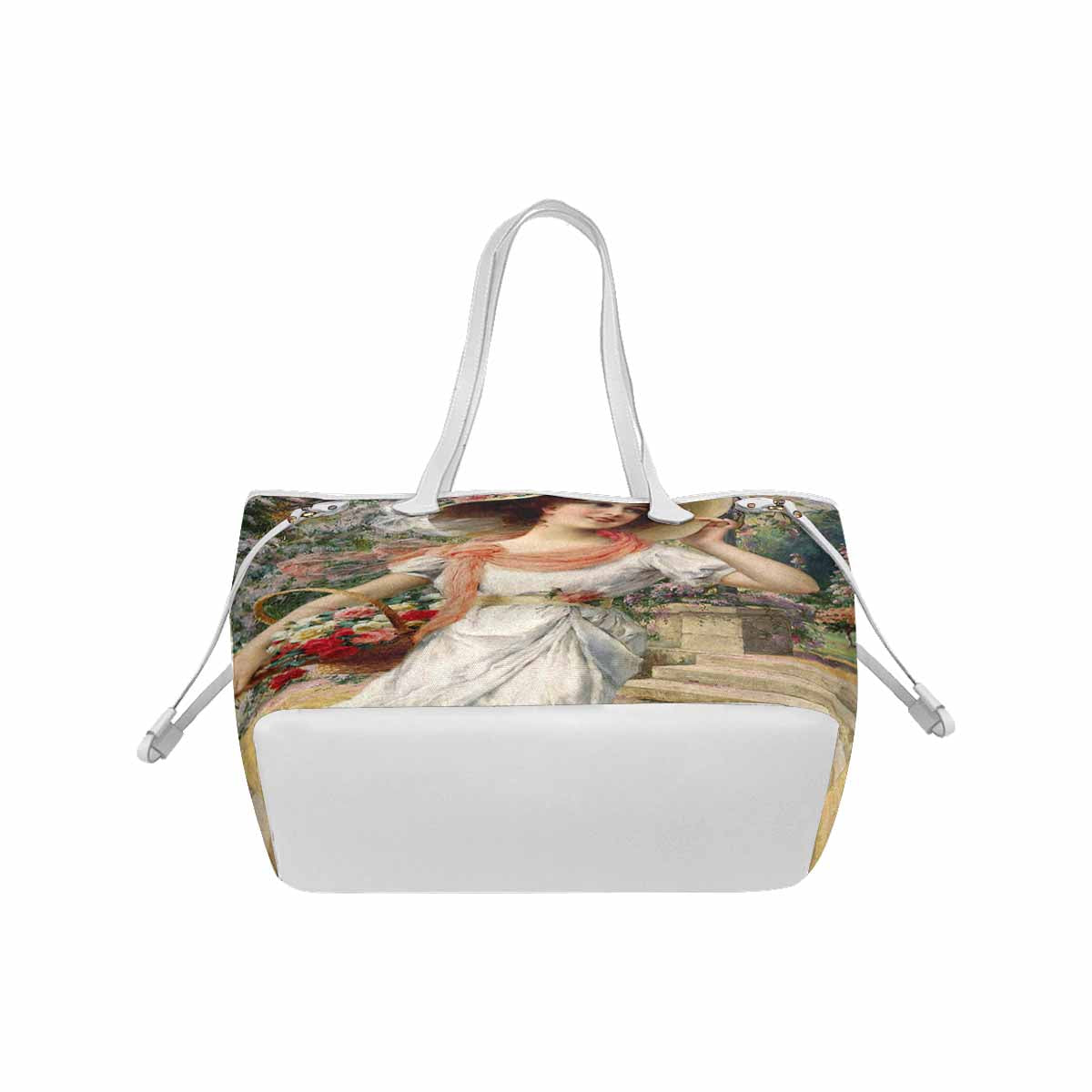 Victorian Lady Design Handbag, Model 1695361, The Flower Garden, WHITE TRIM