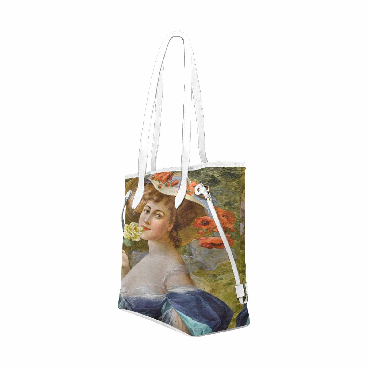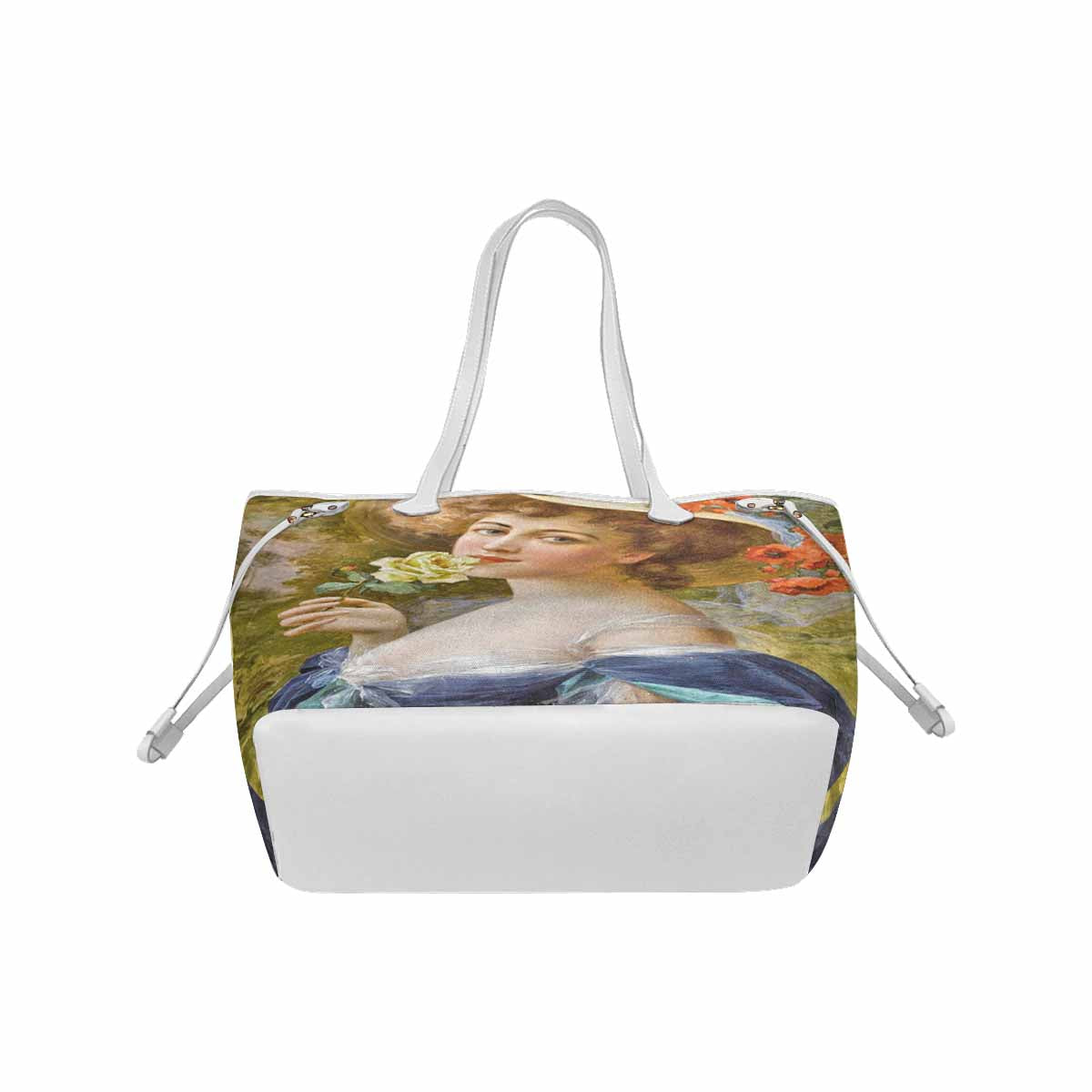 Victorian Lady Design Handbag, Model 1695361, Woman With Yellow Rose At Mouth, WHITE TRIM