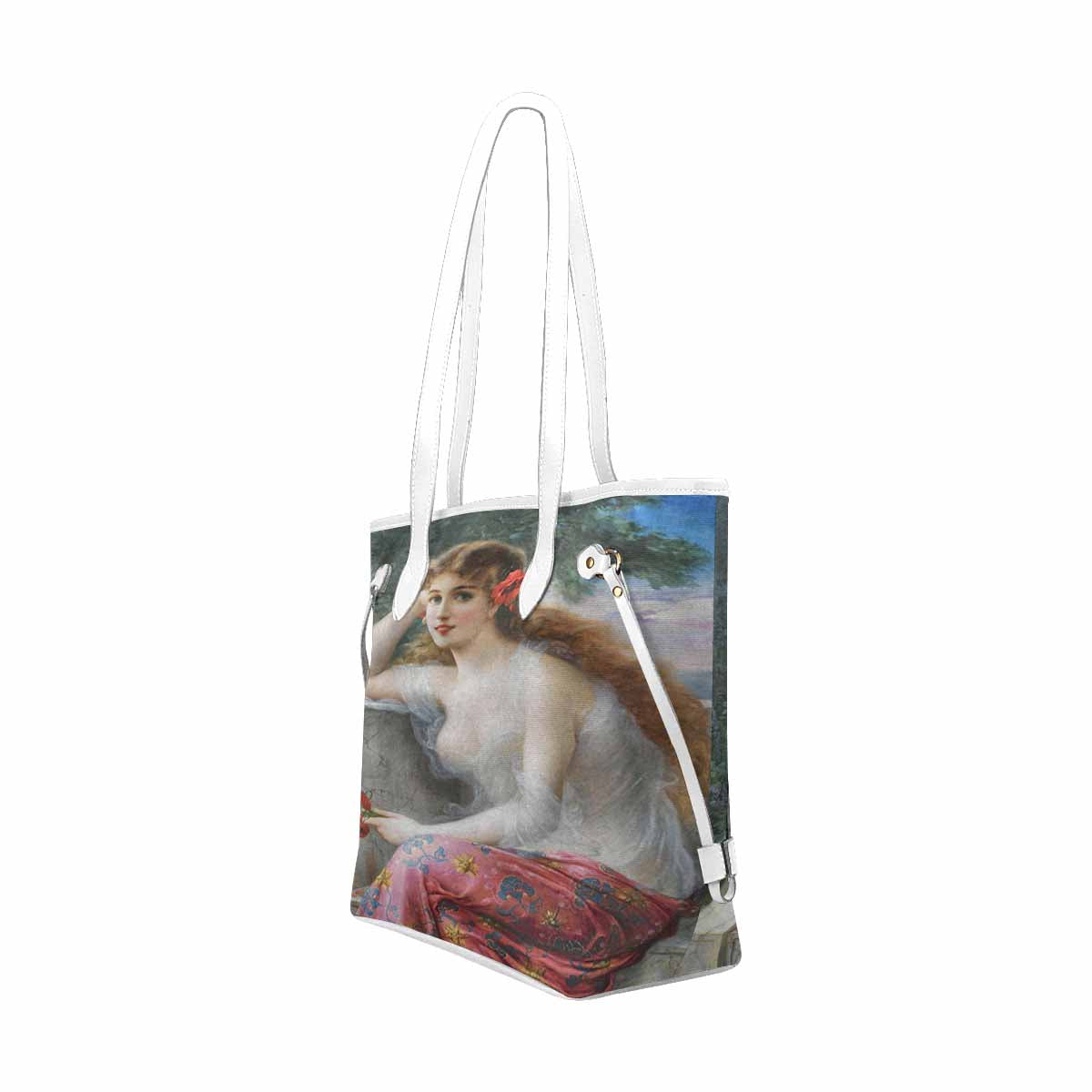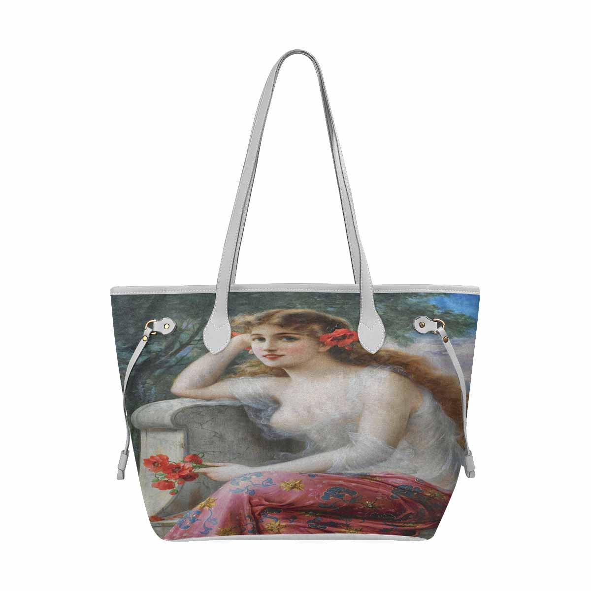 Victorian Lady Design Handbag, Model 1695361, Young Beauty With Poppies, WHITE TRIM
