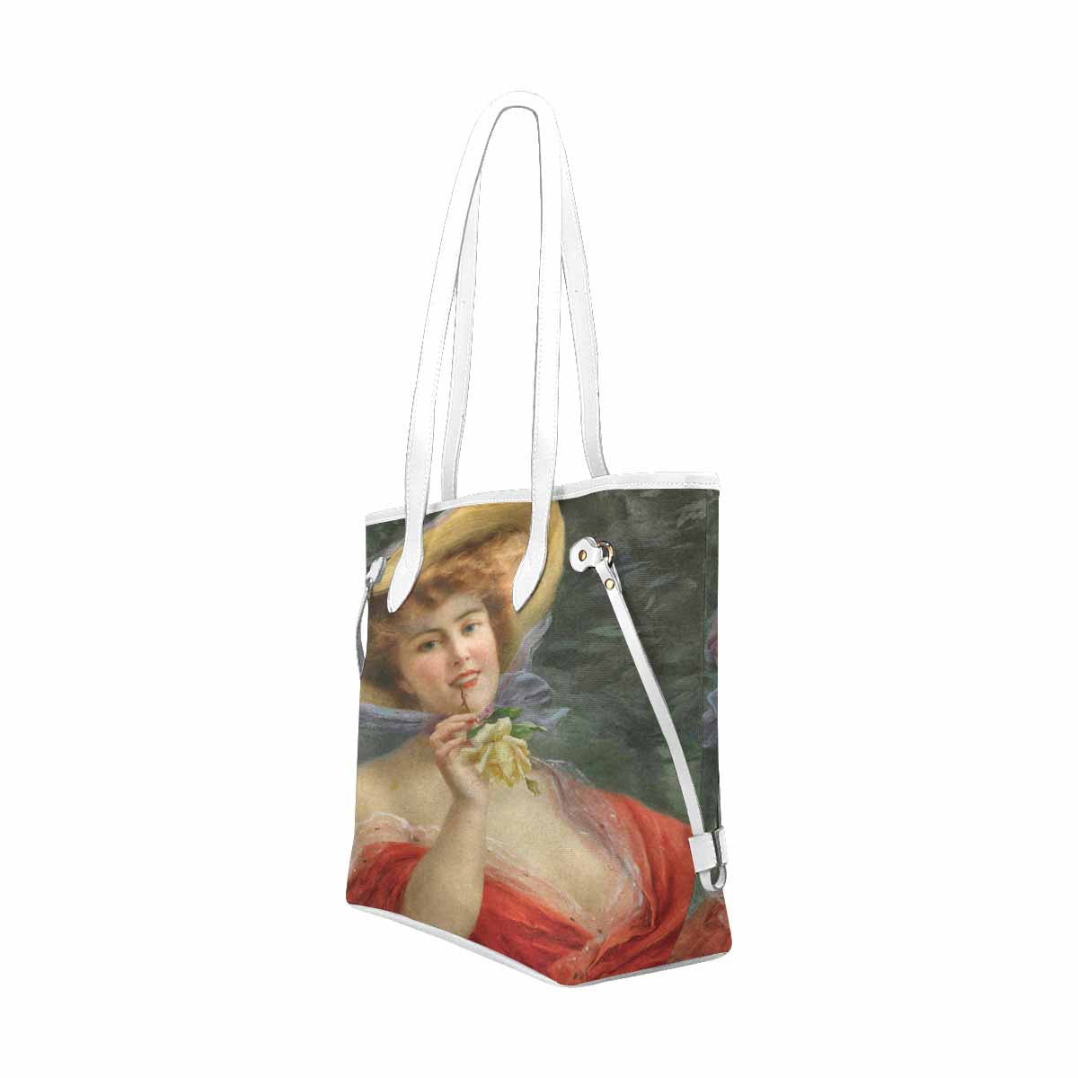 Victorian Lady Design Handbag, Model 1695361, Young Girl With A Rose, WHITE TRIM