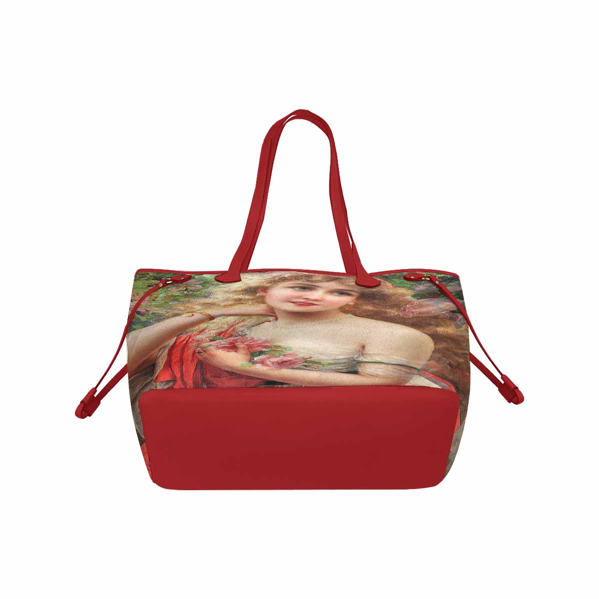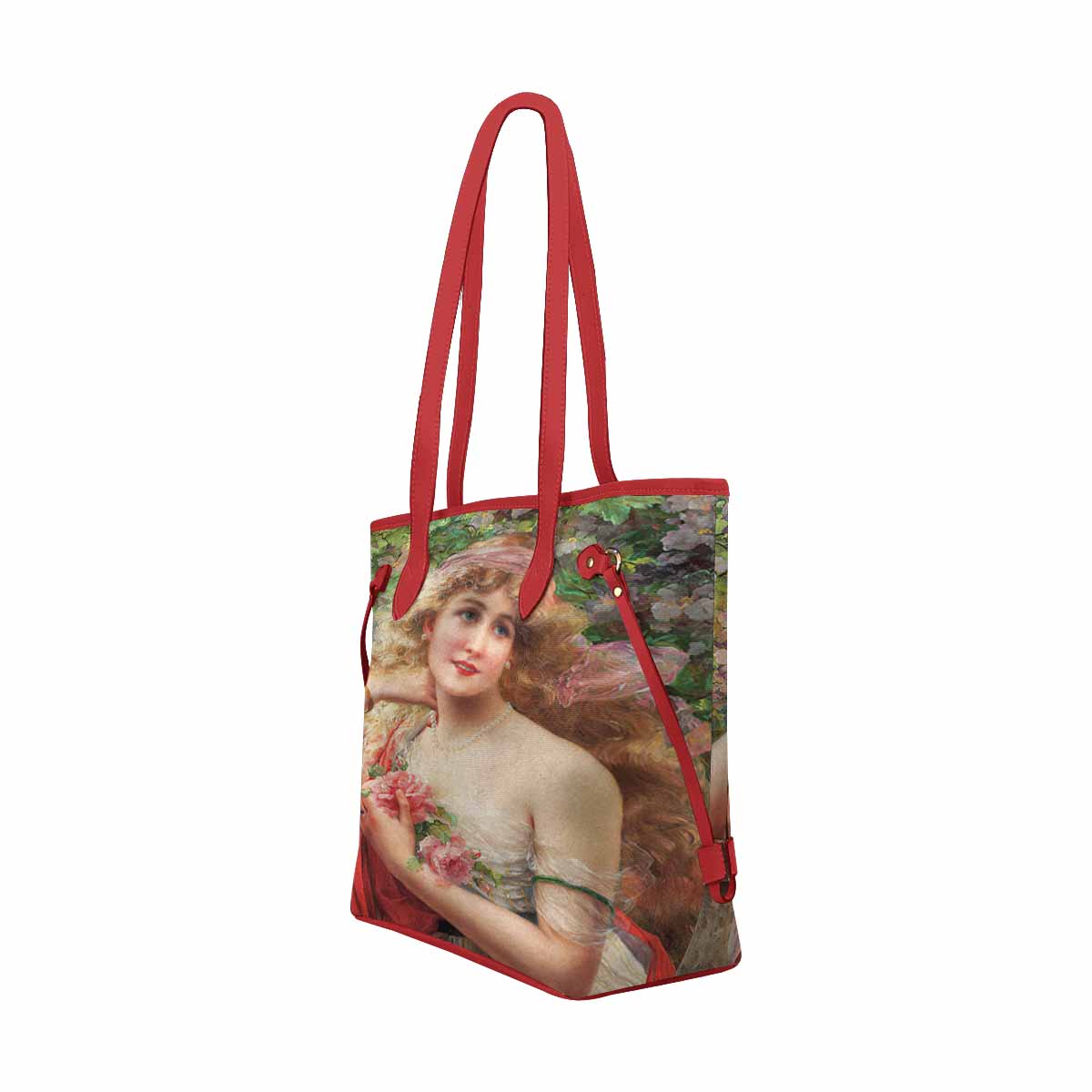 Victorian Lady Design Handbag, Model 1695361, Young Lady With Roses, RED TRIM