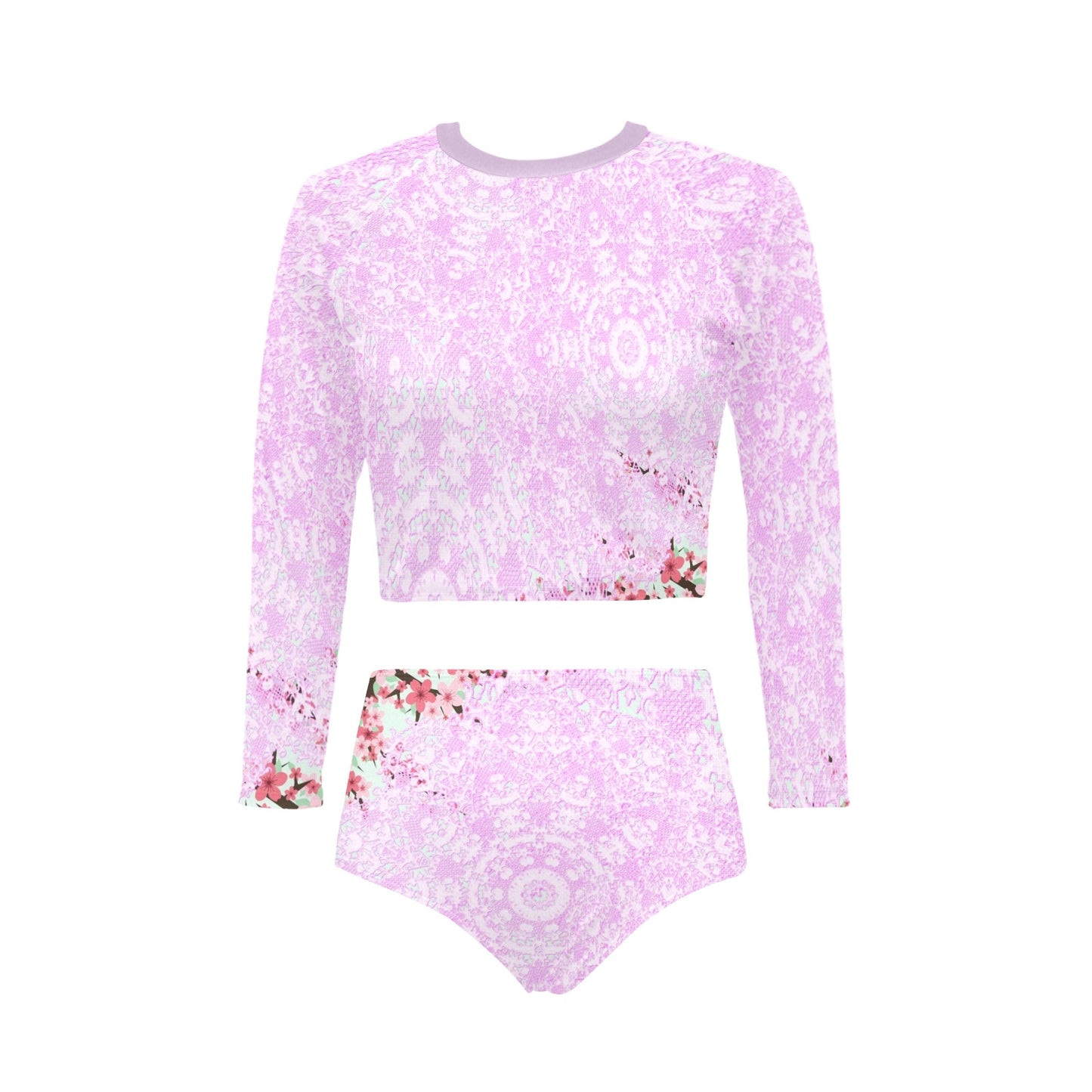 Victorian printed lace, long sleeve 2pc swimsuit, beachwear, design 09 Long Sleeve Bikini Set (Model S27)