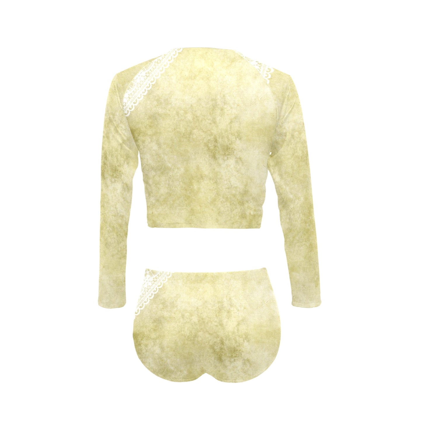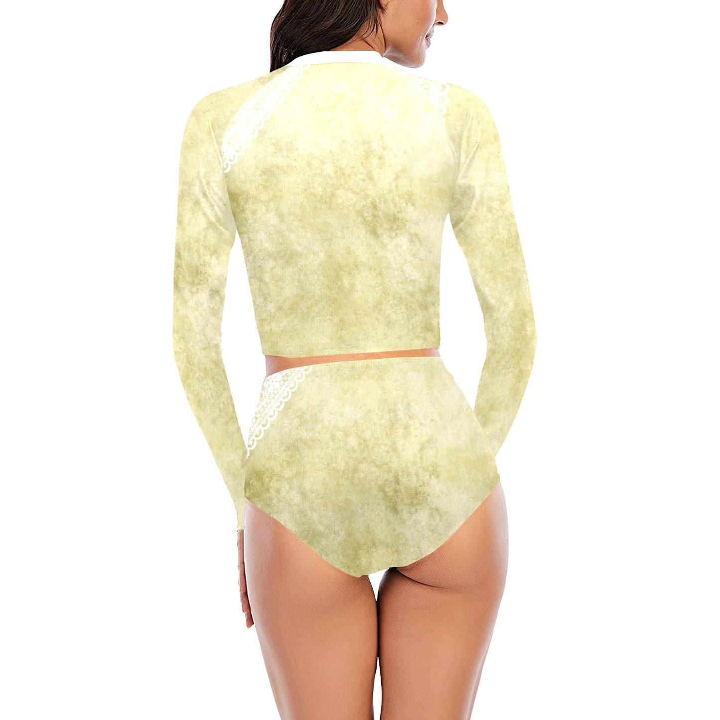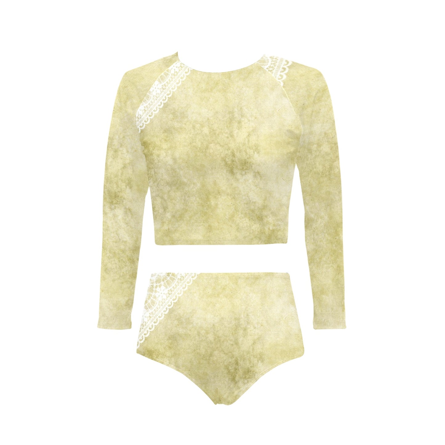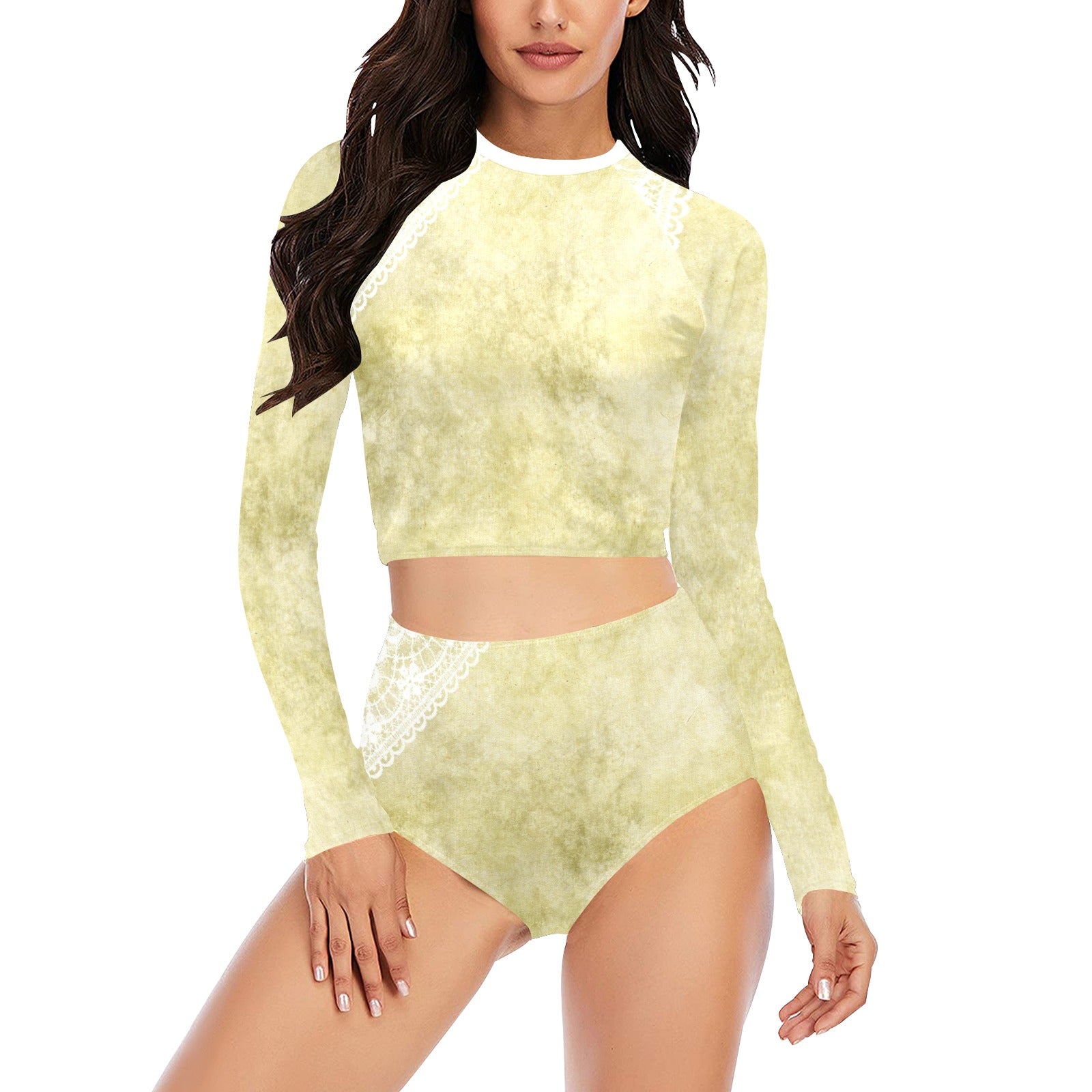 Victorian printed lace, long sleeve 2pc swimsuit, beachwear, design 43 Long Sleeve Bikini Set (Model S27)