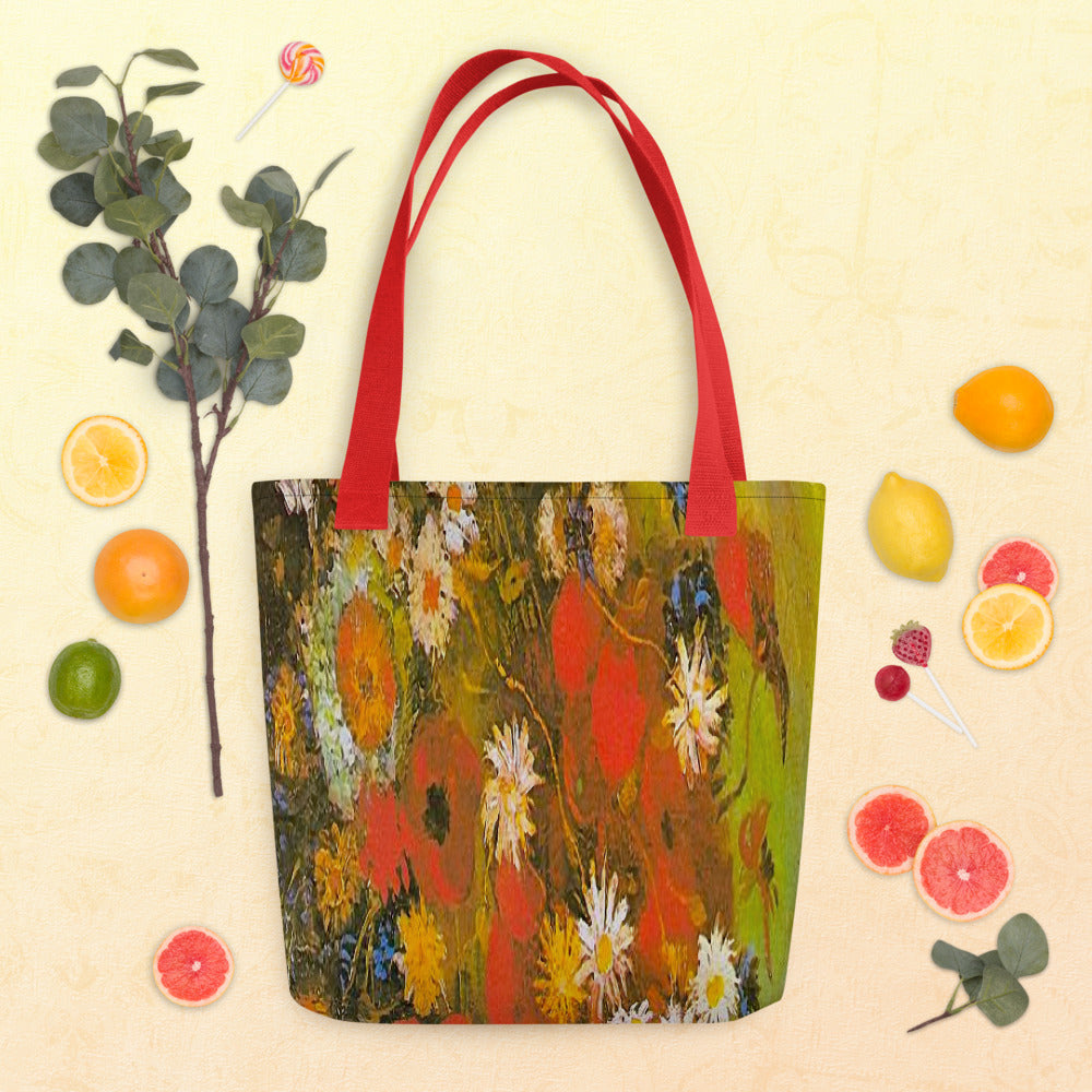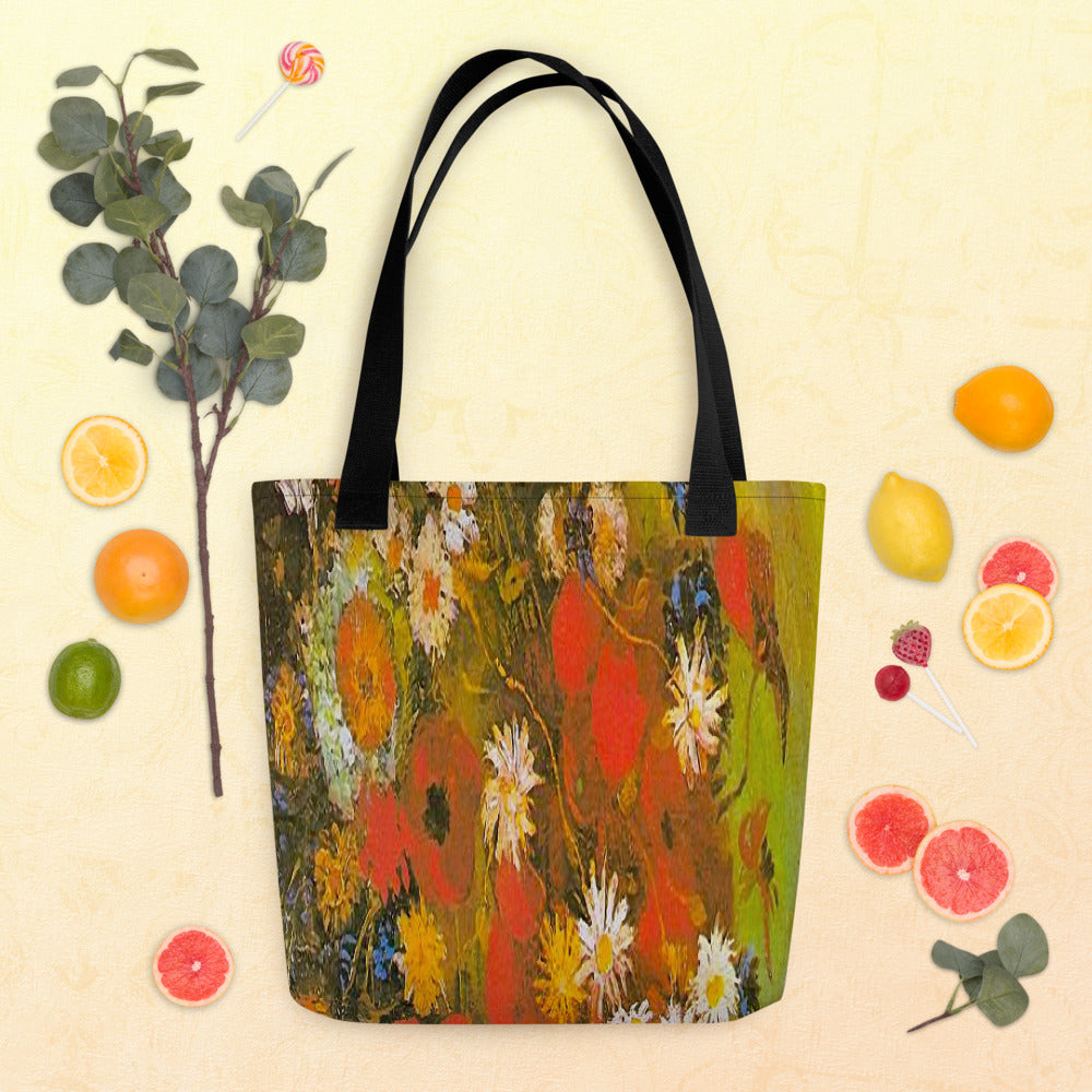 Vintage floral casual tote bag, beach bag, 15 x 15 inch, Design 60