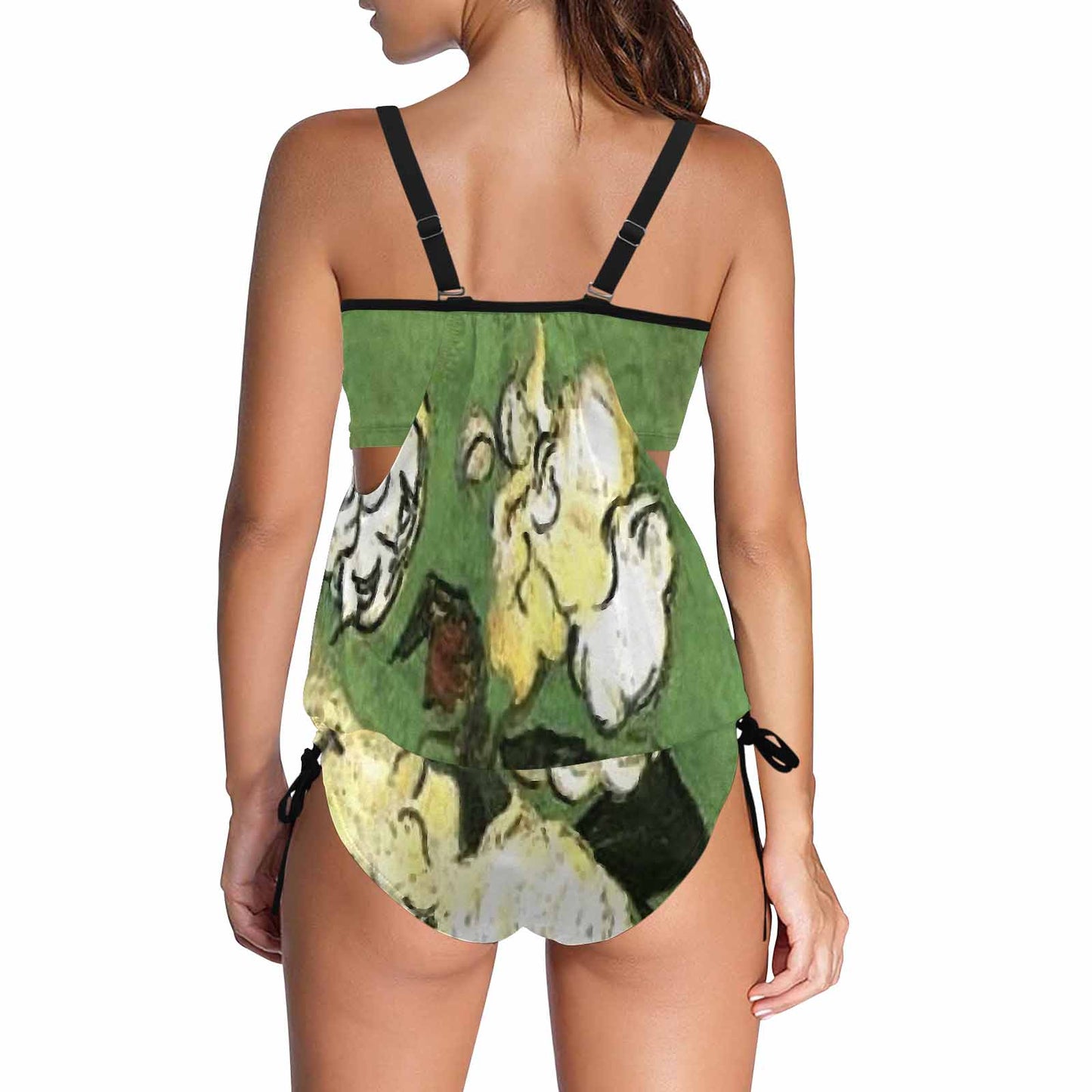 Vintage floral,cover belly tankini beach wear, swim wear, Design 55
