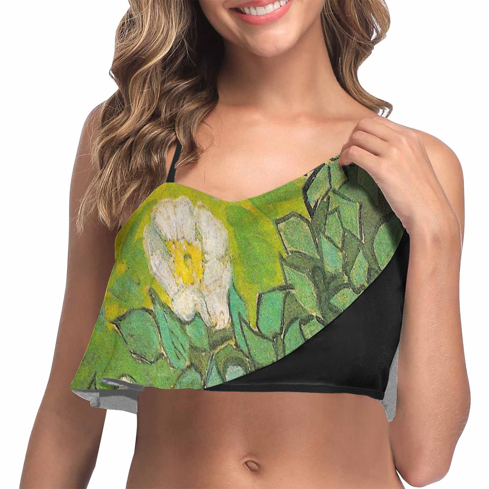 Vintage floral flounce bikini top, Design 01