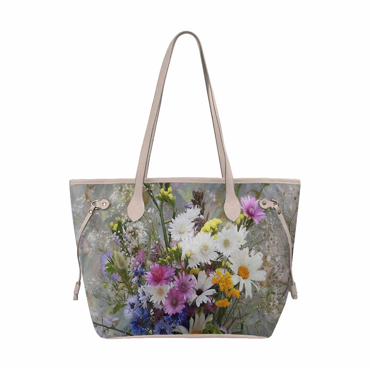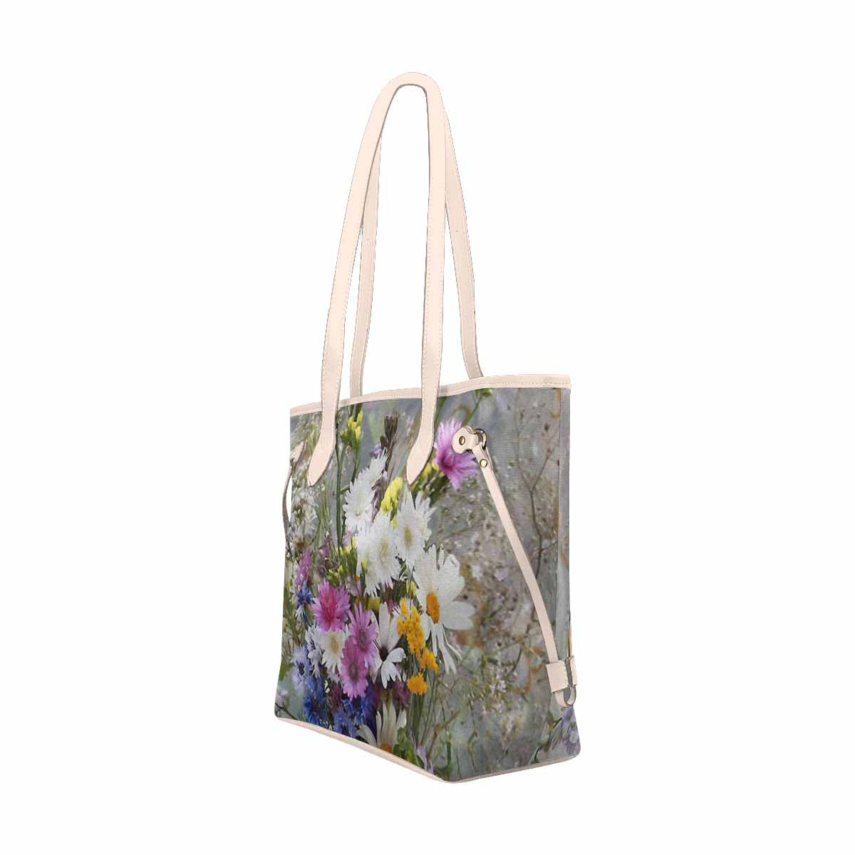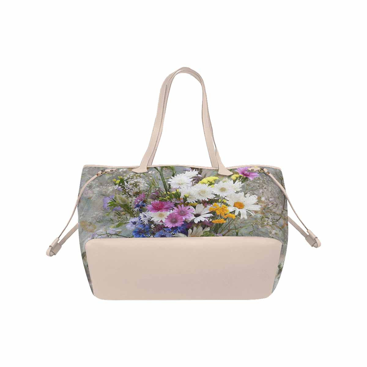 Vintage Floral Handbag, Classic Handbag, Mod 1695361 Design 02, BEIGE/TAN TRIM