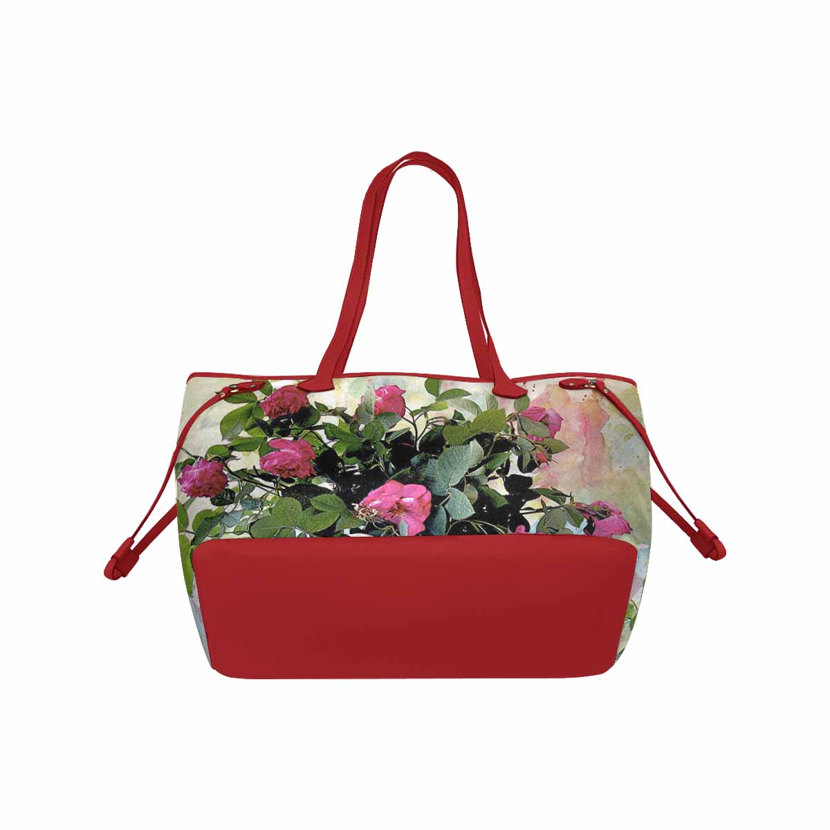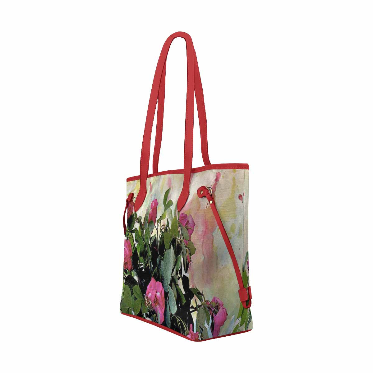 Vintage Floral Handbag, Classic Handbag, Mod 1695361 Design 22, RED TRIM