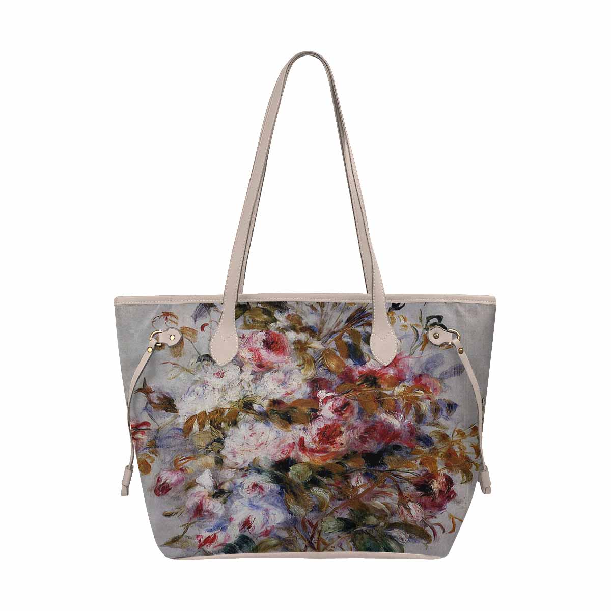 Vintage Floral Handbag, Classic Handbag, Mod 1695361 Design 12, BEIGE/TAN TRIM