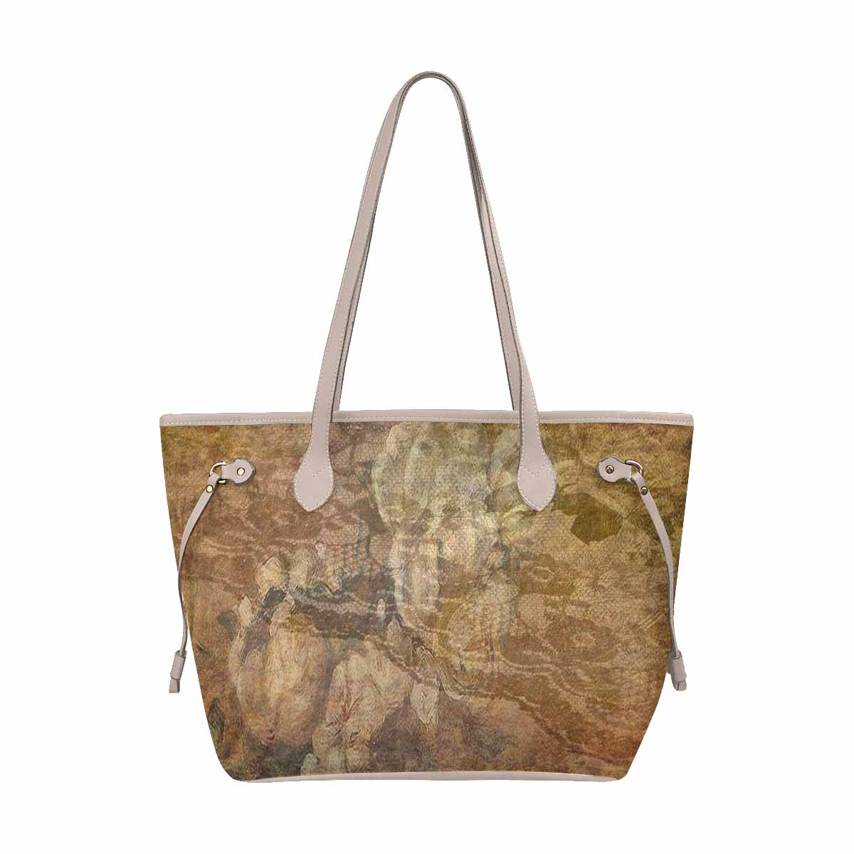 Vintage Floral Handbag, Classic Handbag, Mod 1695361 Design 17X, BEIGE/TAN TRIM