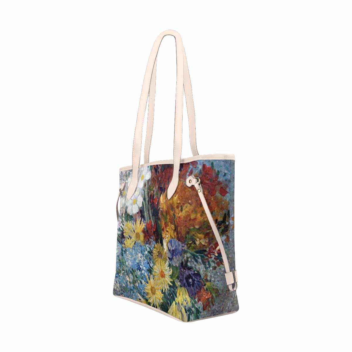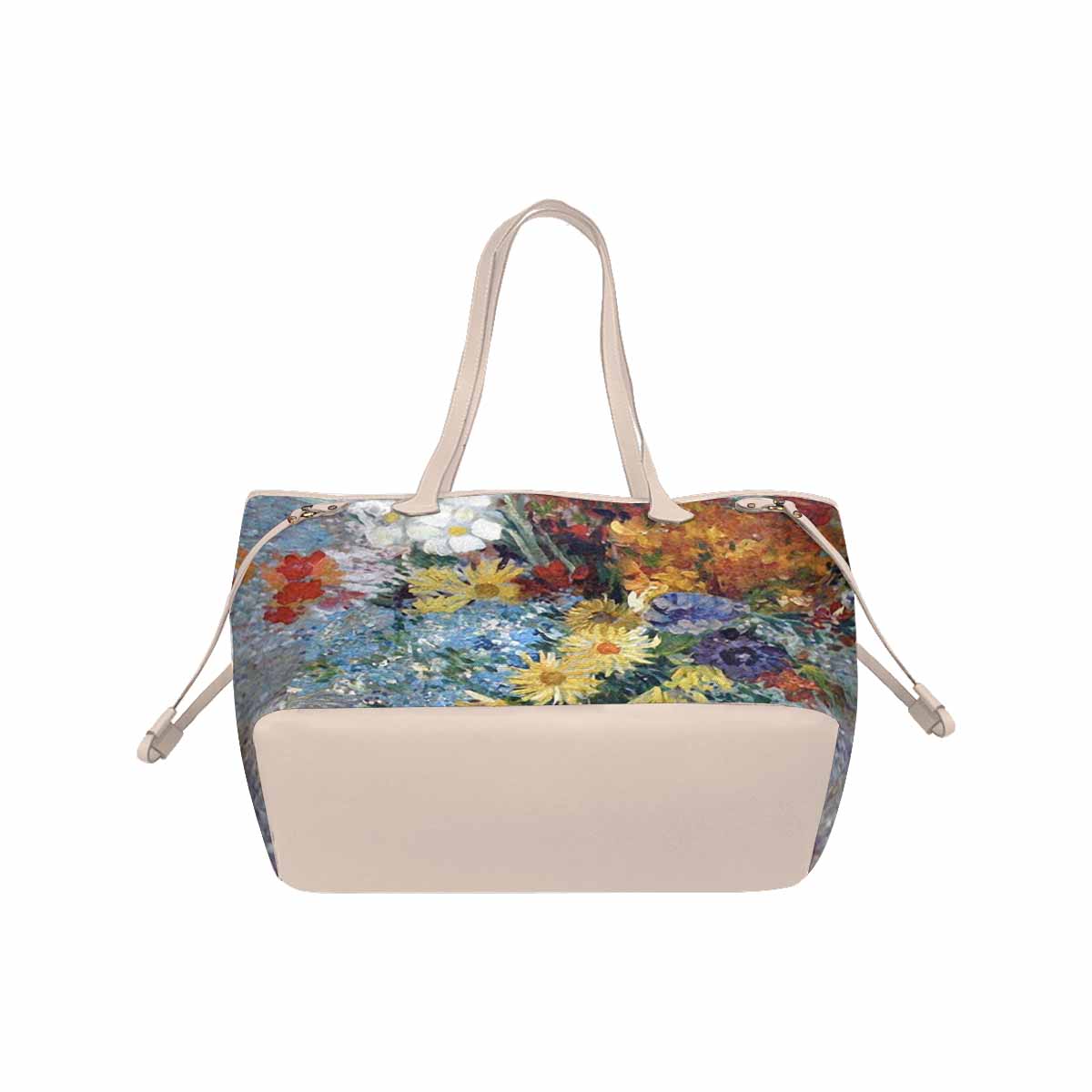 Vintage Floral Handbag, Classic Handbag, Mod 1695361 Design 41, BEIGE/TAN TRIM