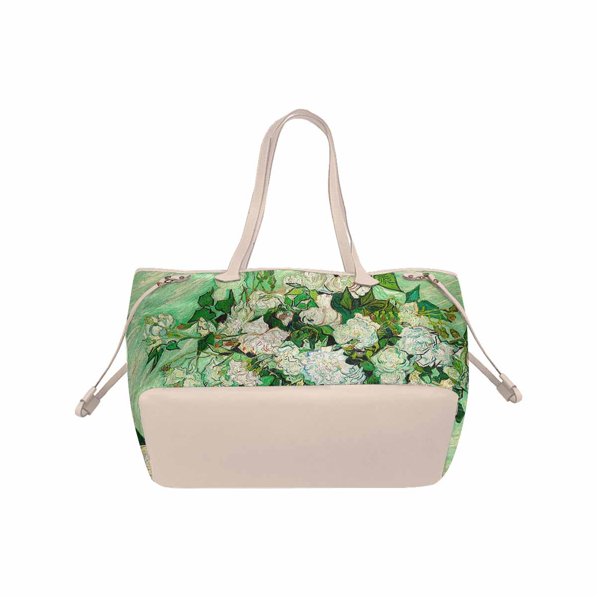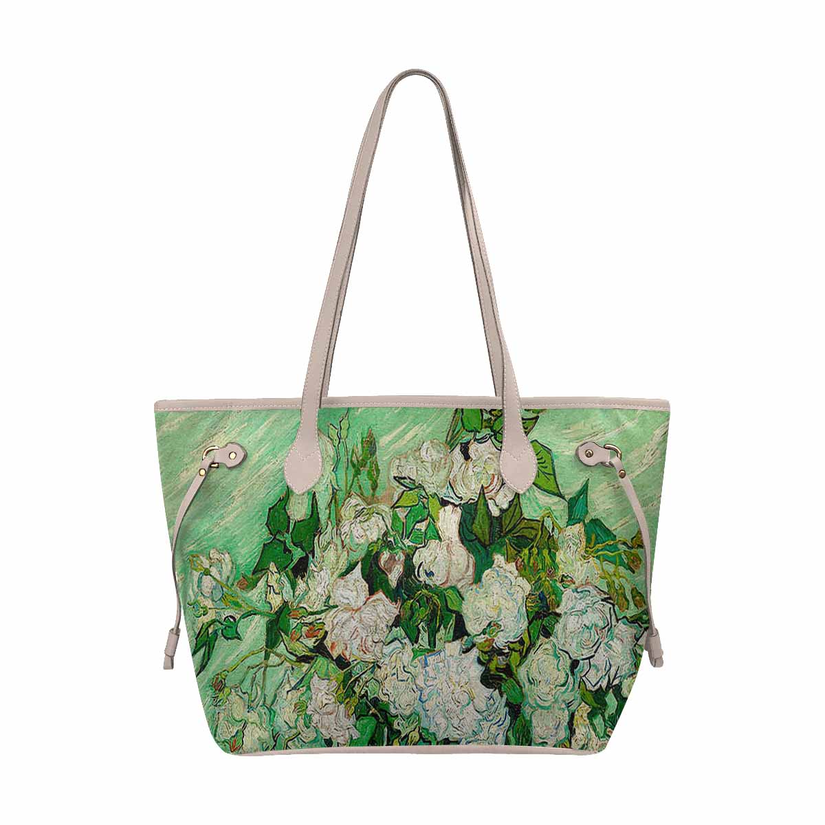 Vintage Floral Handbag, Classic Handbag, Mod 1695361 Design 45, BEIGE/TAN TRIM