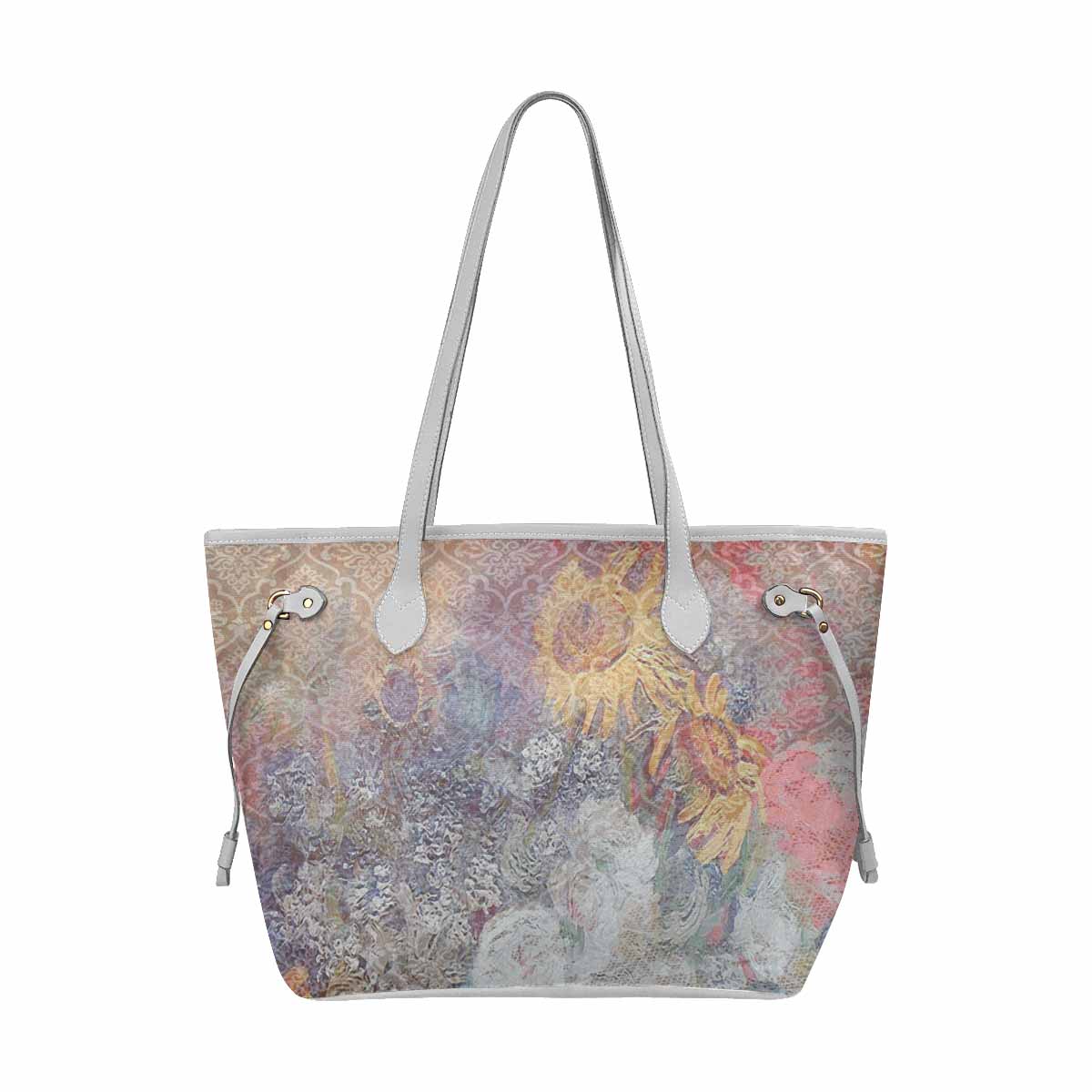 Vintage Floral Handbag, Classic Handbag, Mod 1695361Design 54x WHITE TRIM
