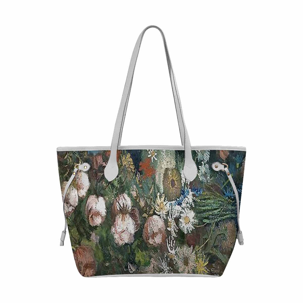 Vintage Floral Handbag, Classic Handbag, Mod 1695361, Design 51 WHITE TRIM