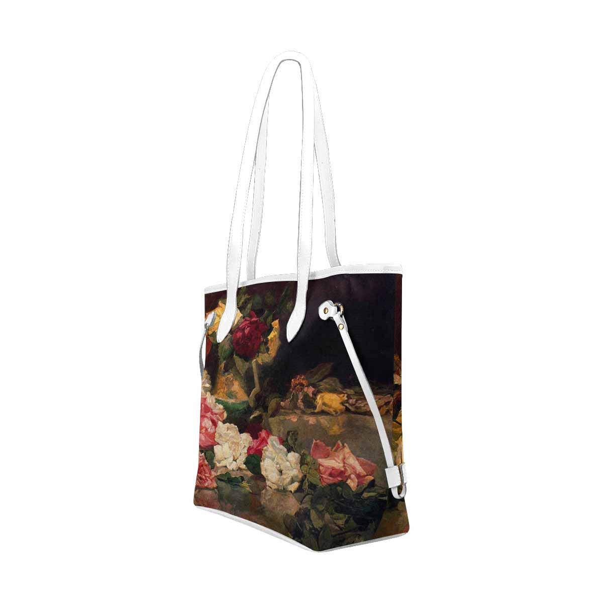 Vintage Floral Handbag, Classic Handbag, Mod 1695361, Design 37 WHITE TRIM