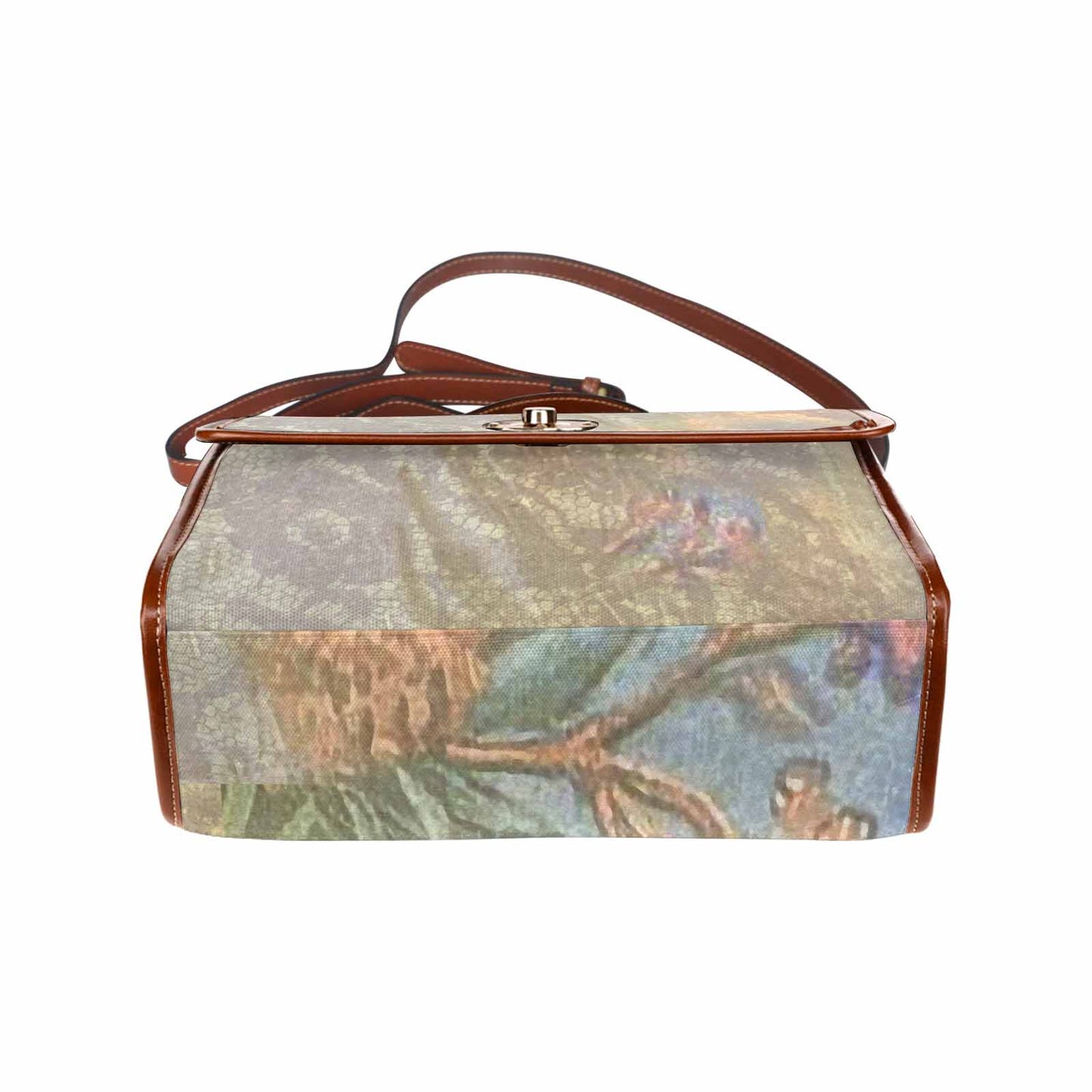 - The shoulder strap is brown.