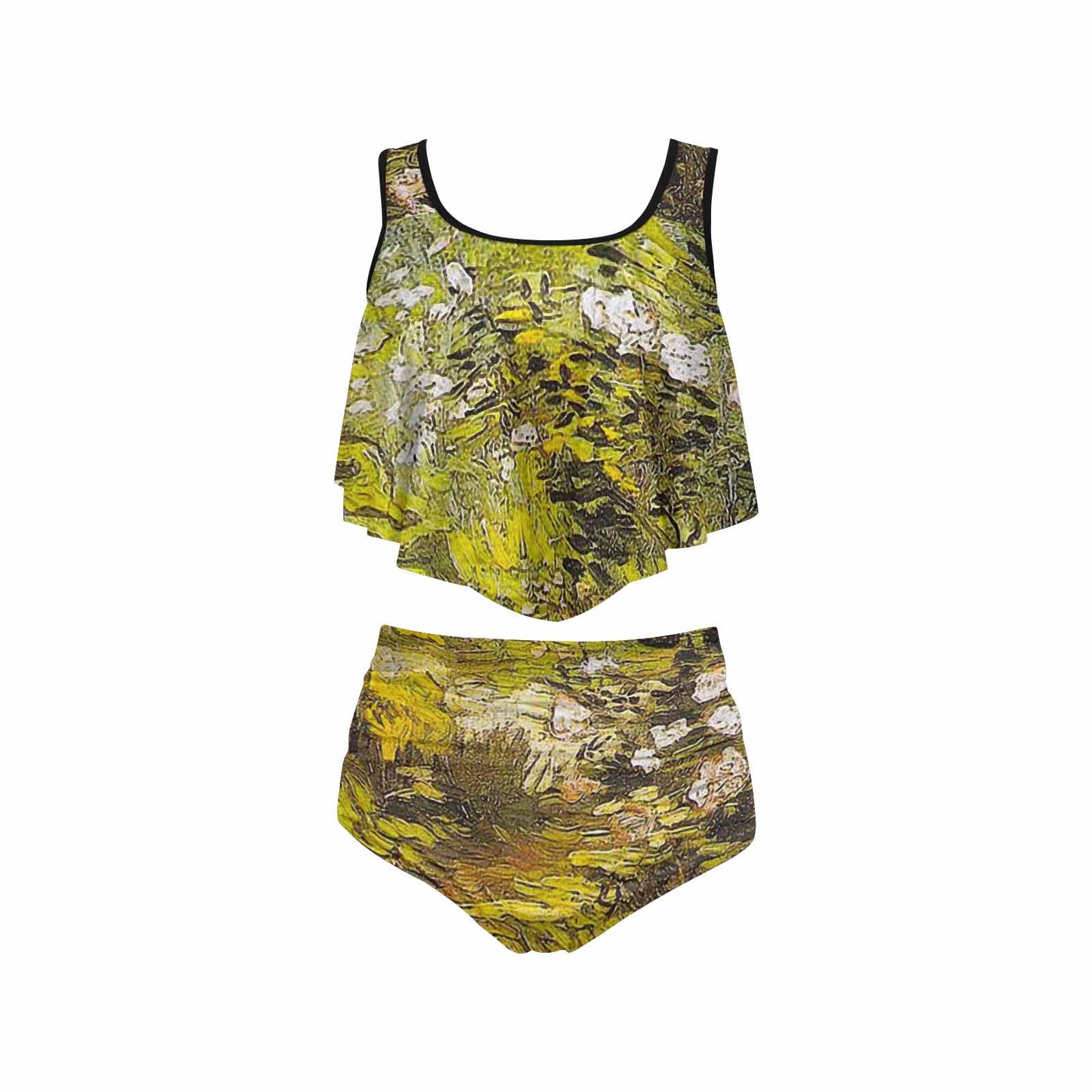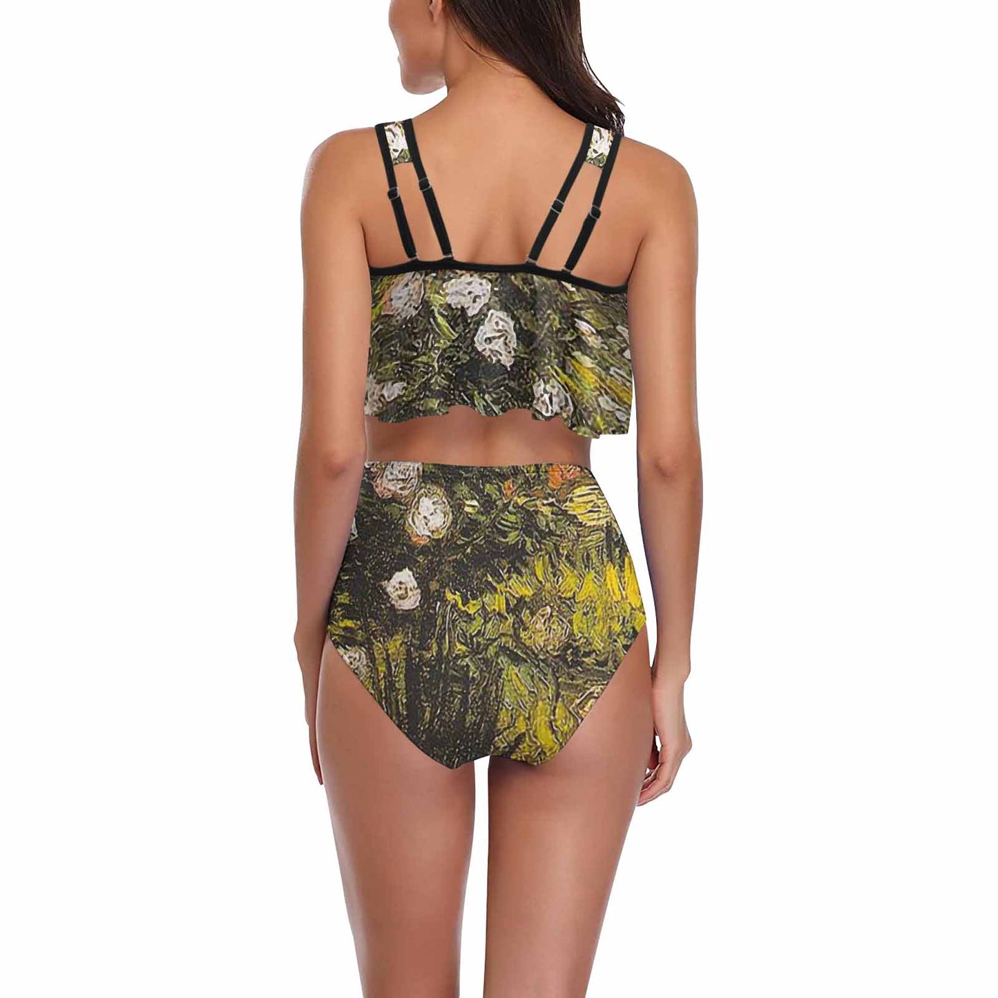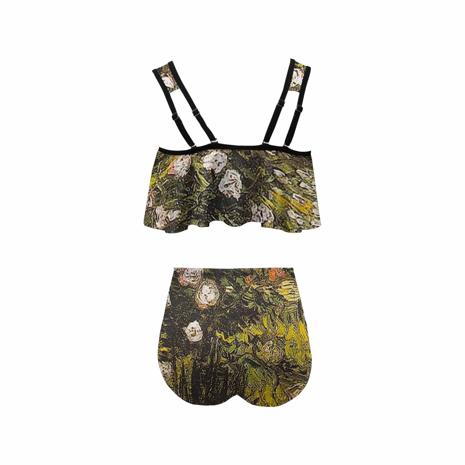 Vintage floral high waisted flounce top bikini, swim wear, Design 05