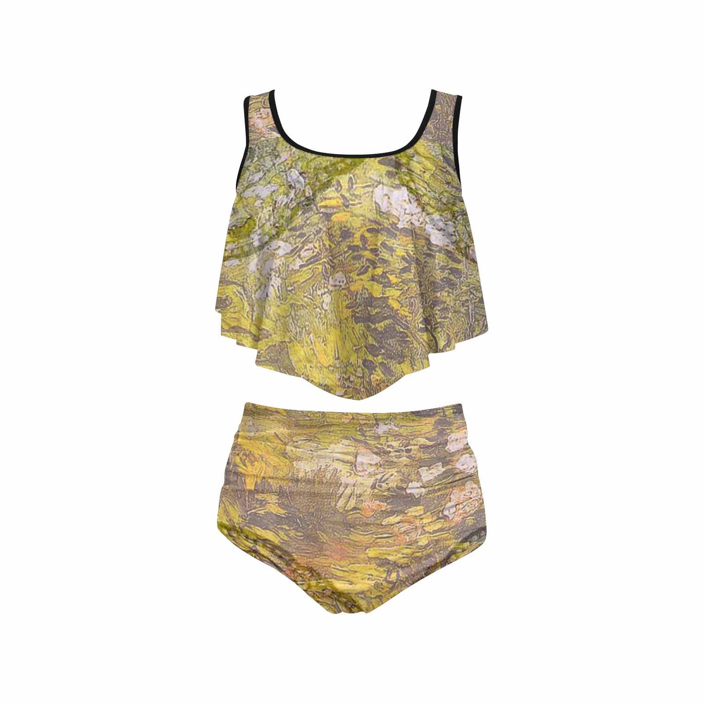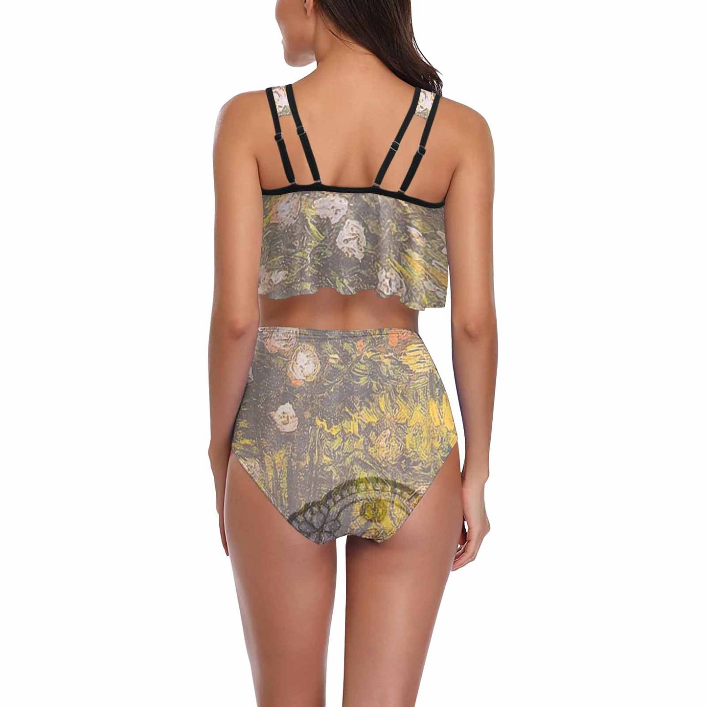 Vintage floral high waisted flounce top bikini, swim wear, Design 05x