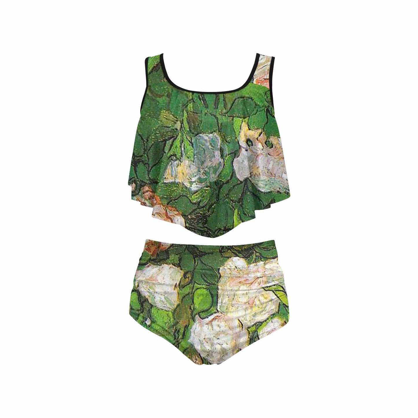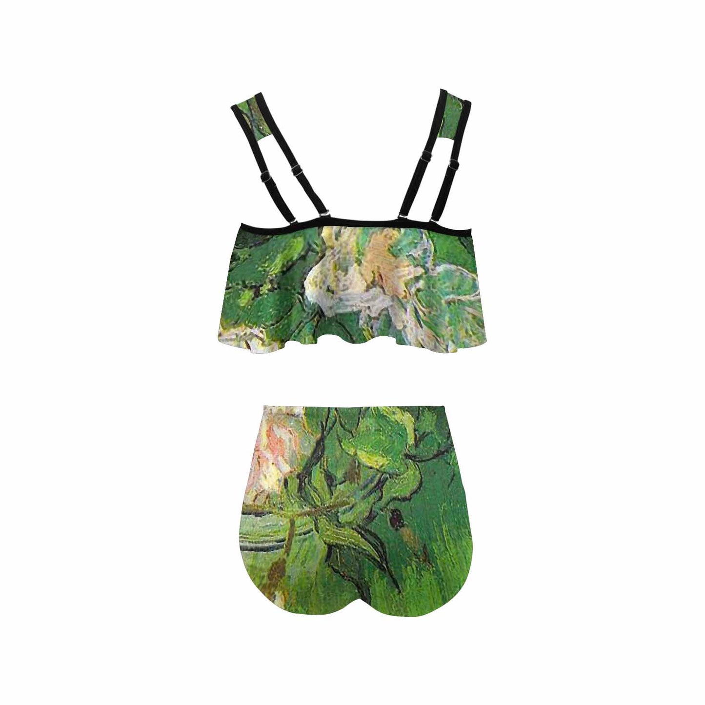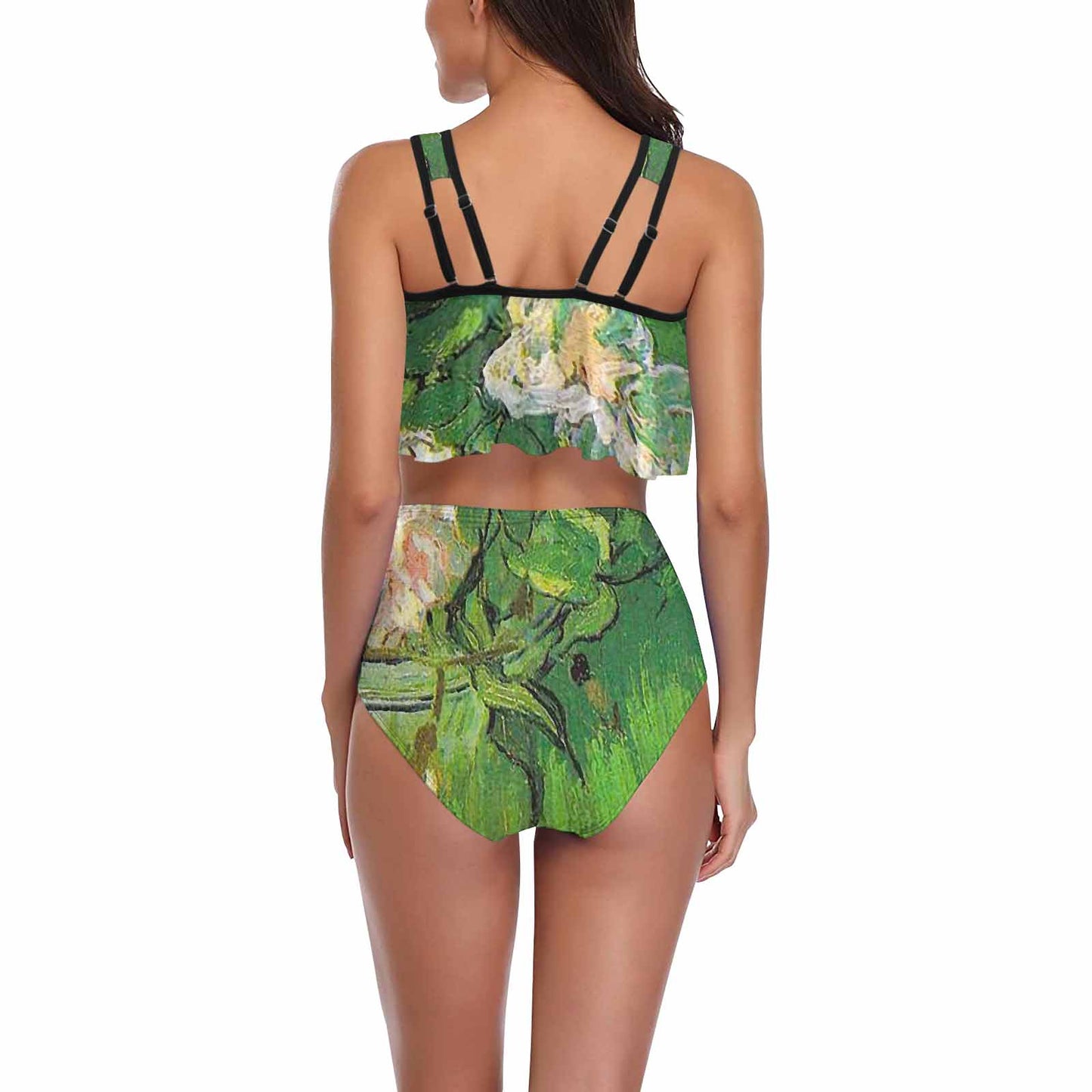 Vintage floral high waisted flounce top bikini, swim wear, Design 06