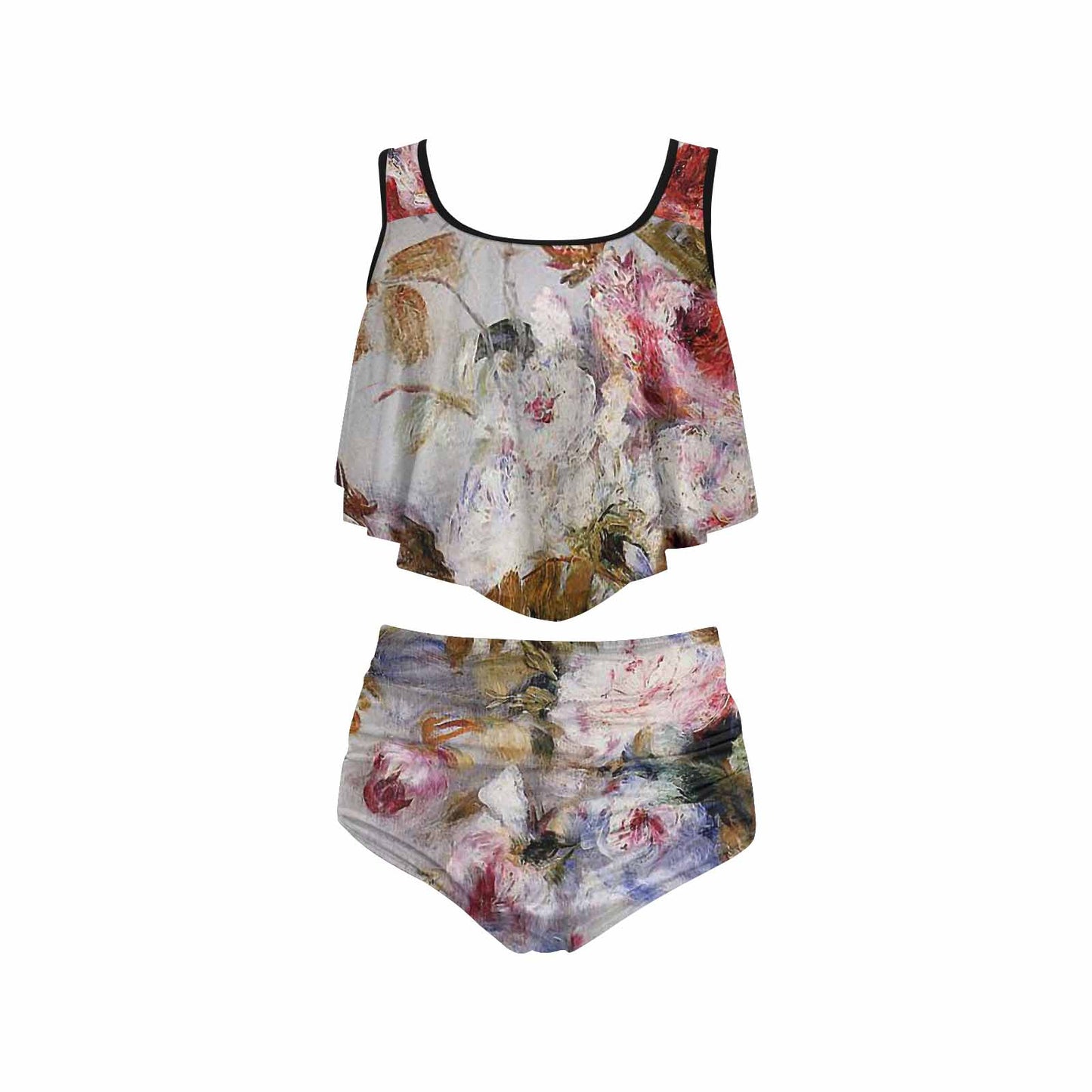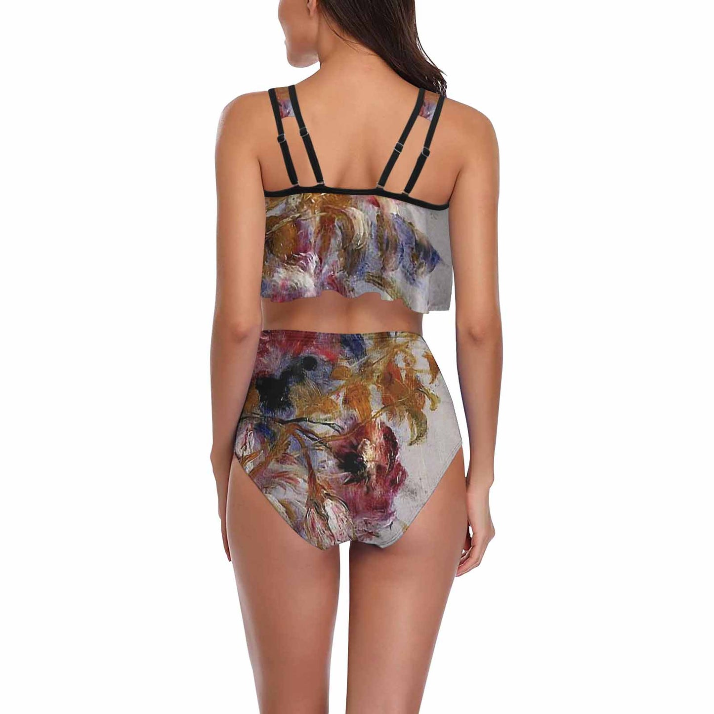 Vintage floral high waisted flounce top bikini, swim wear, Design 12