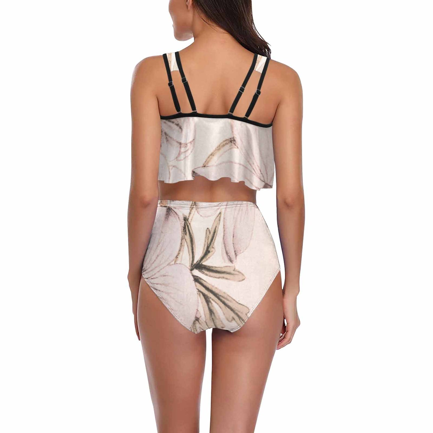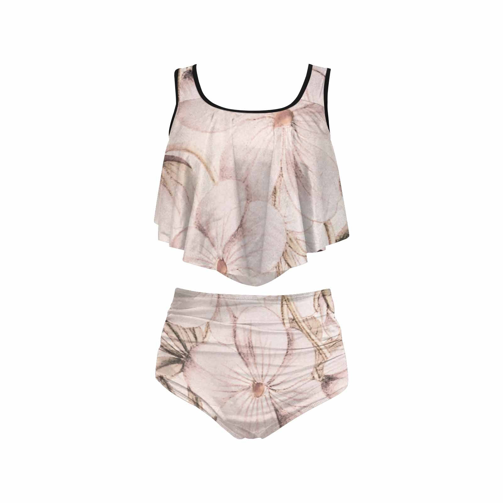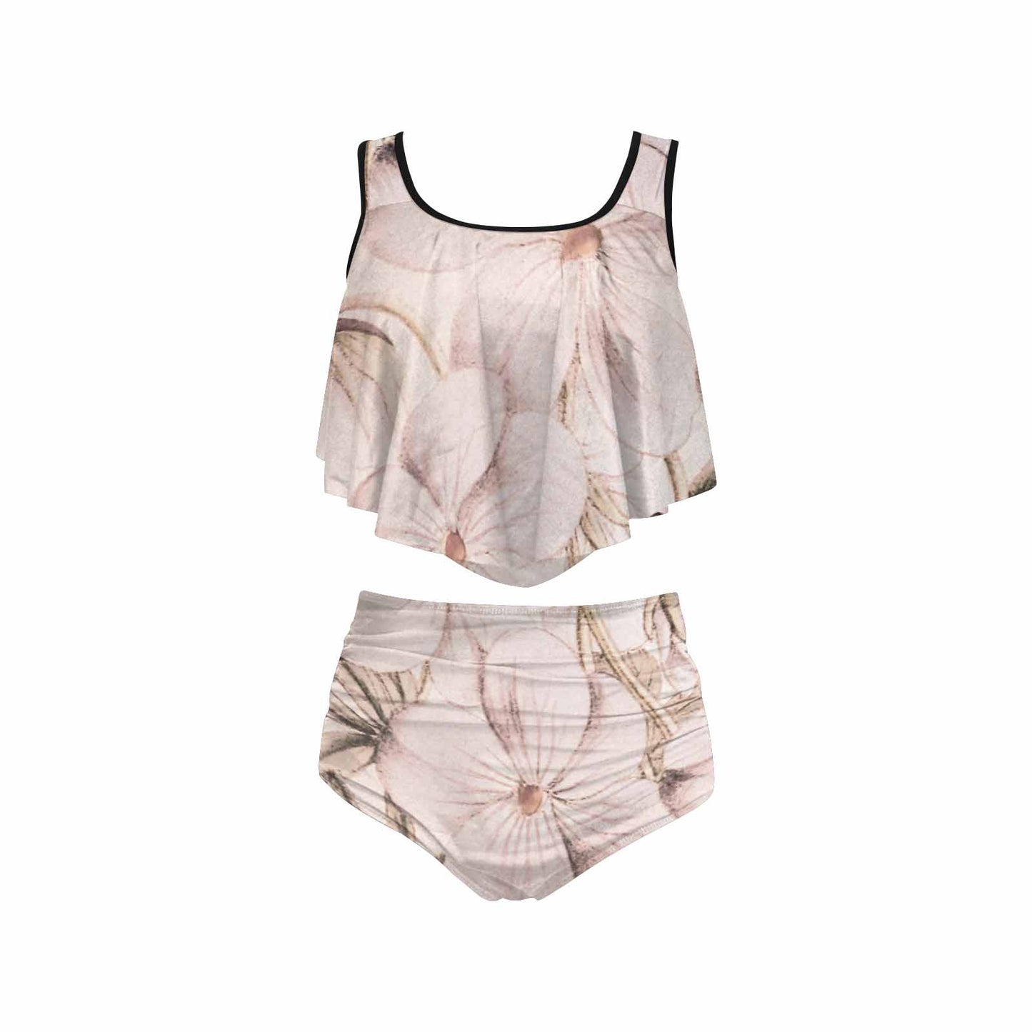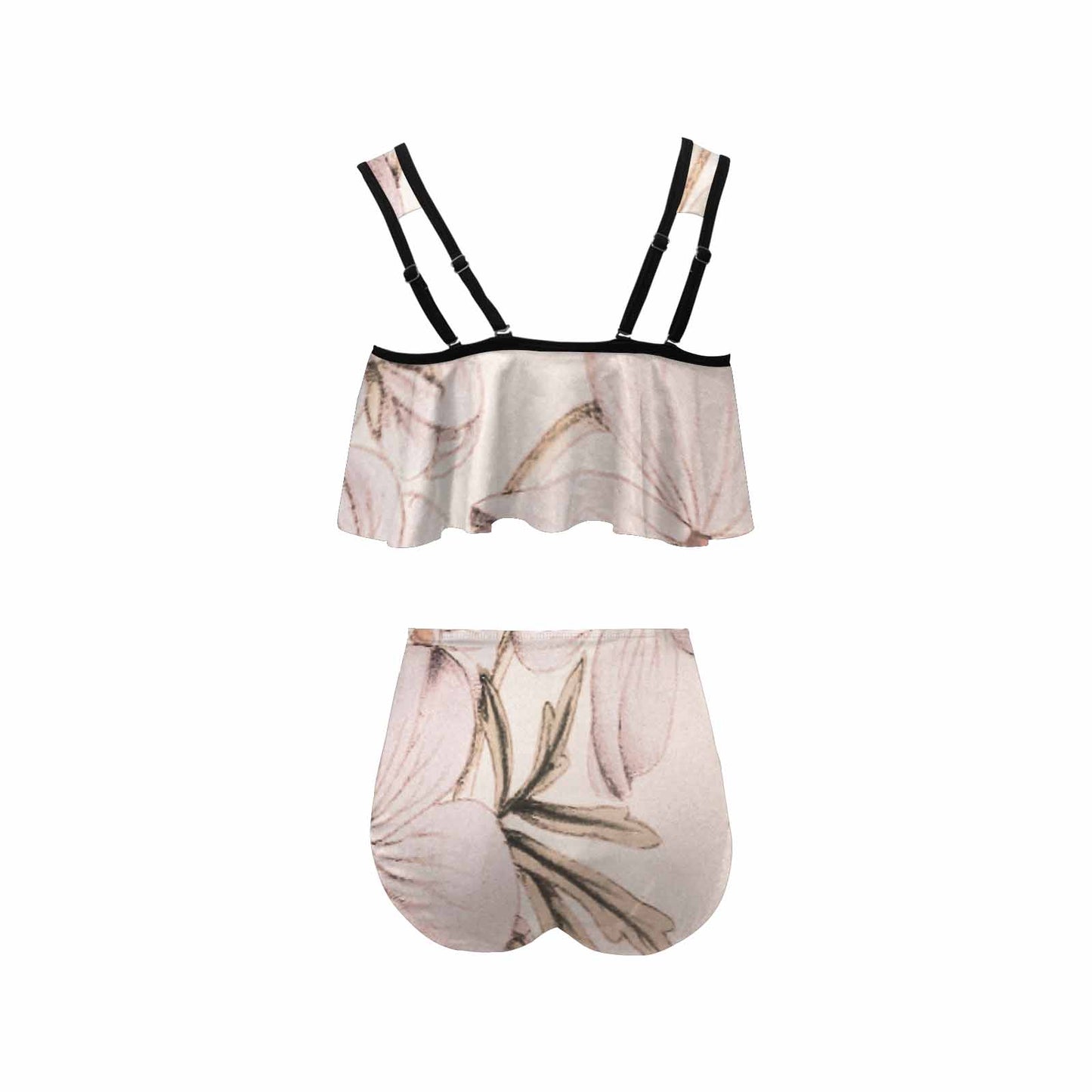 Vintage floral high waisted flounce top bikini, swim wear, Design 13x
