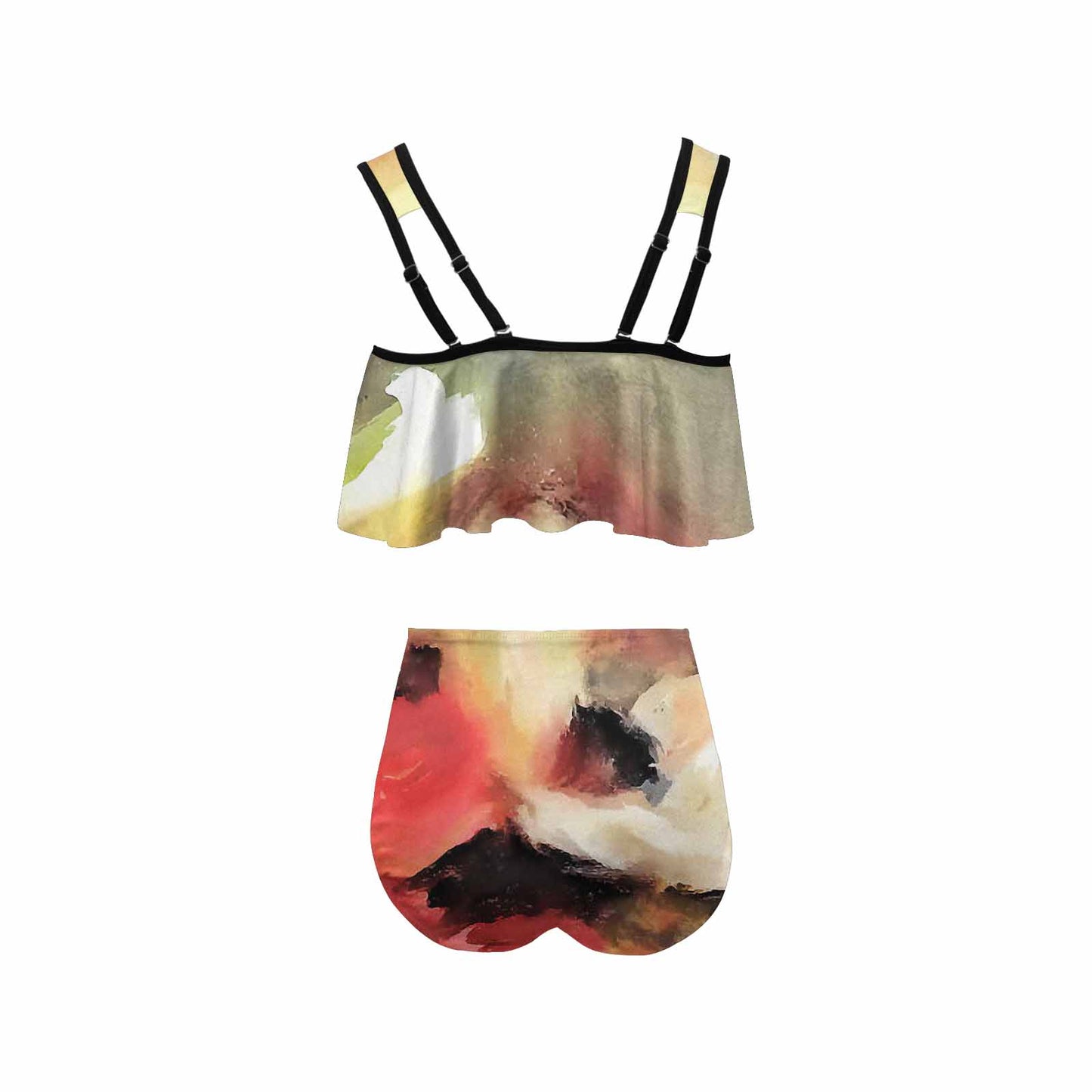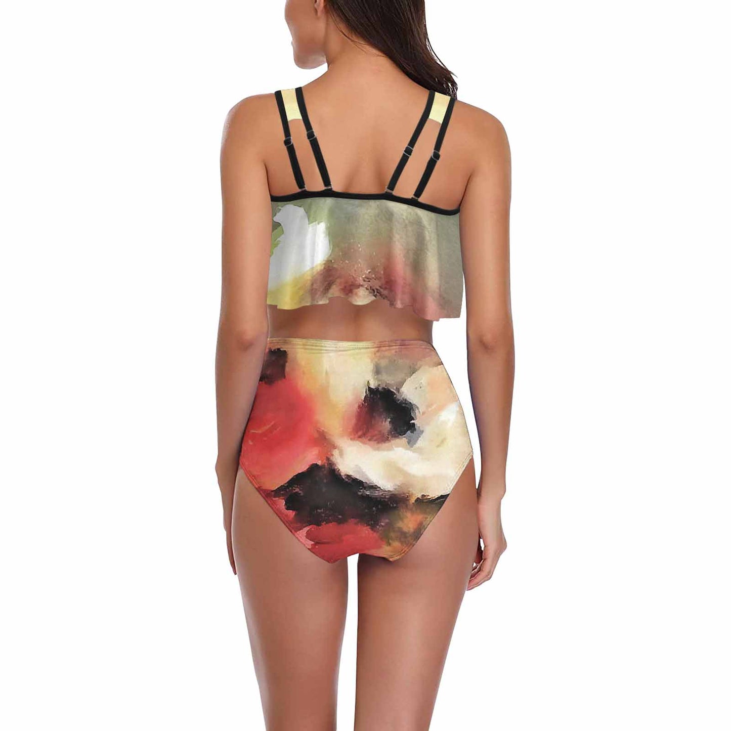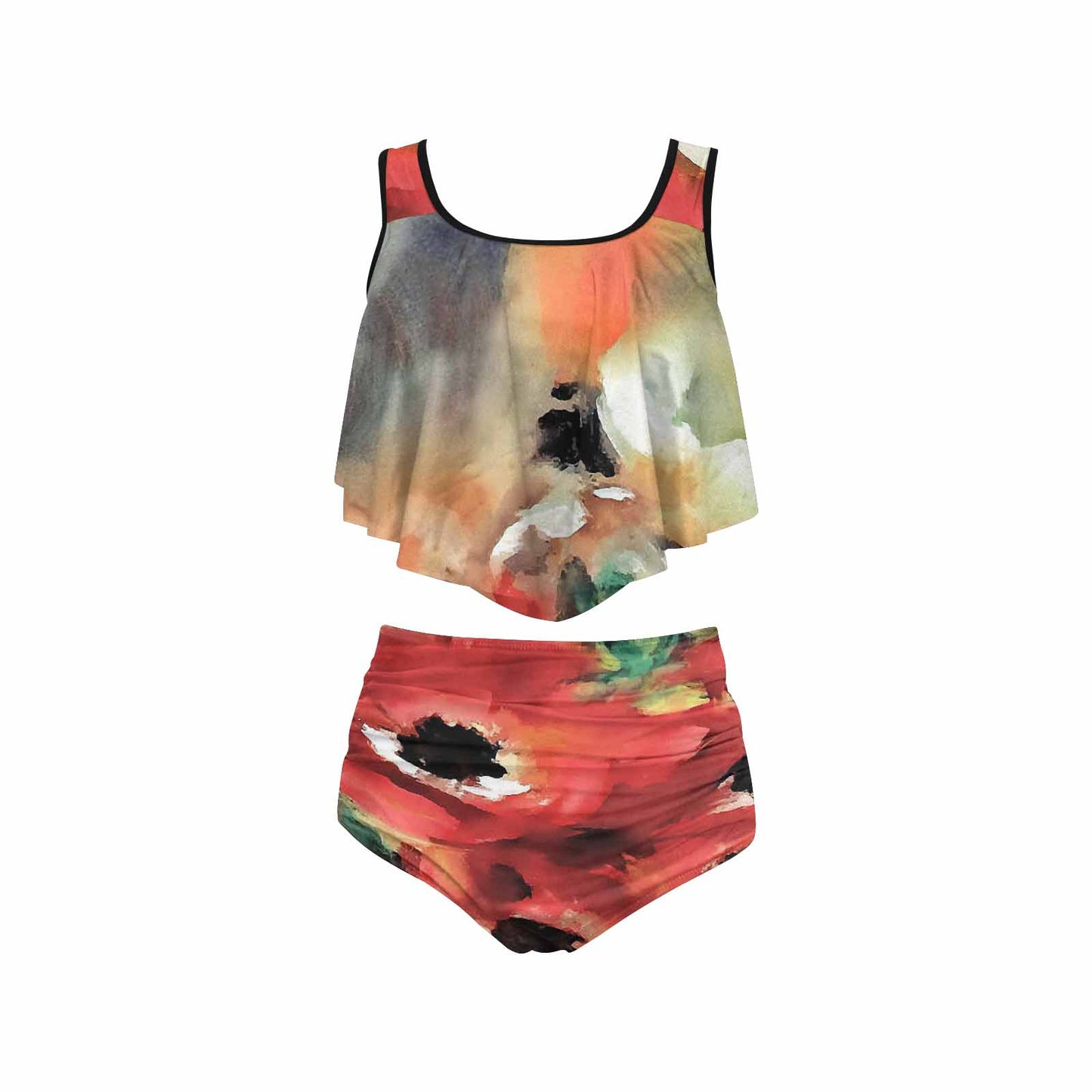 Vintage floral high waisted flounce top bikini, swim wear, Design 14