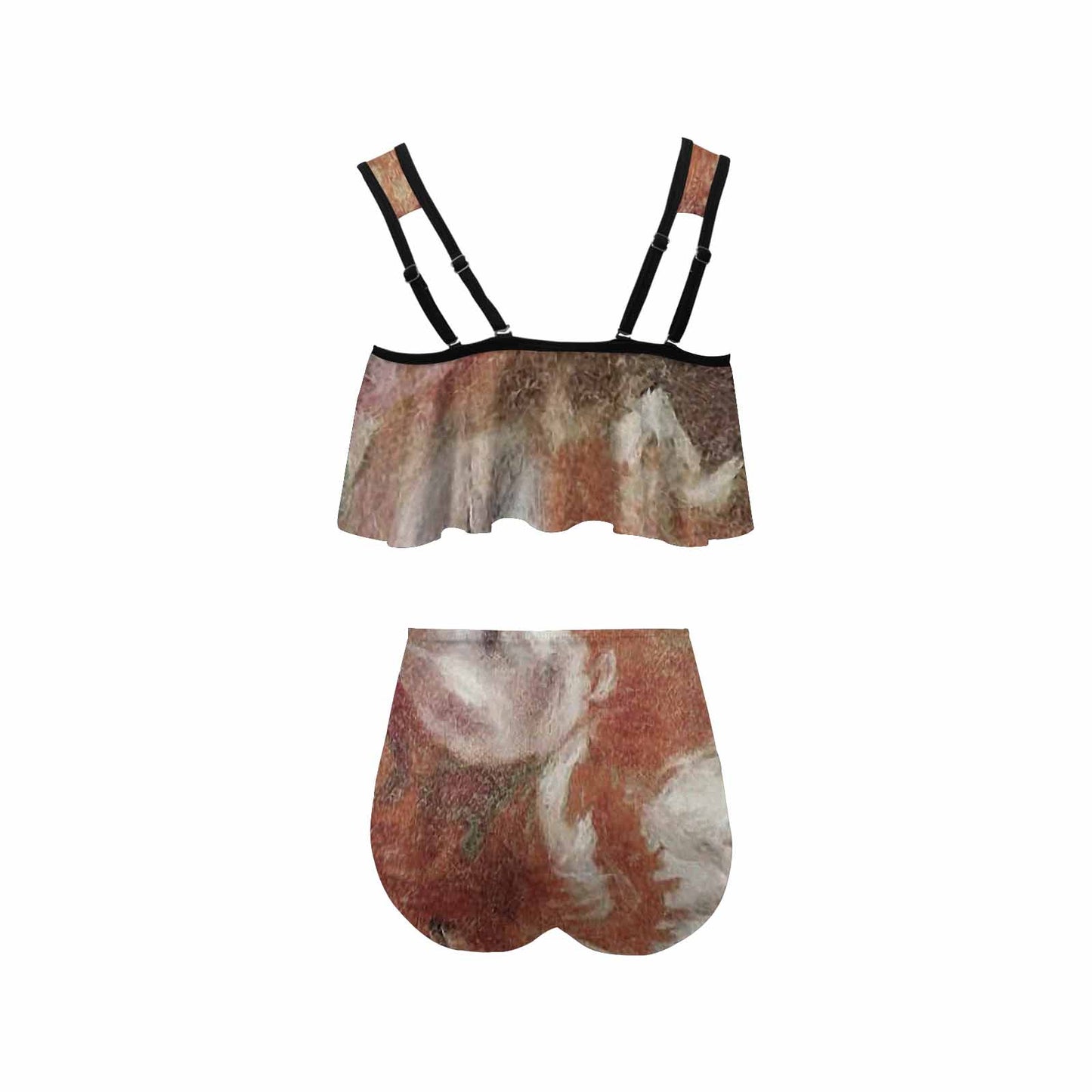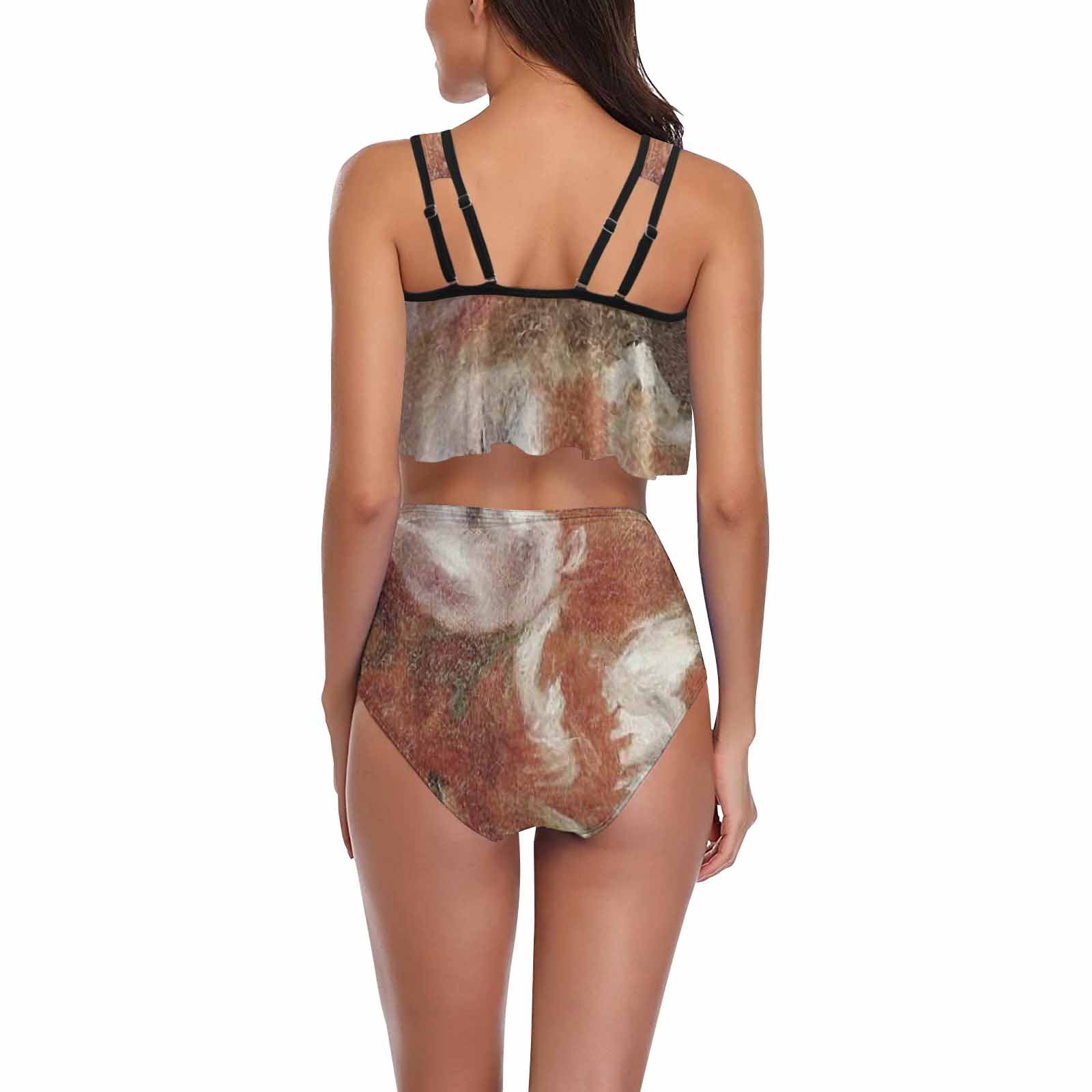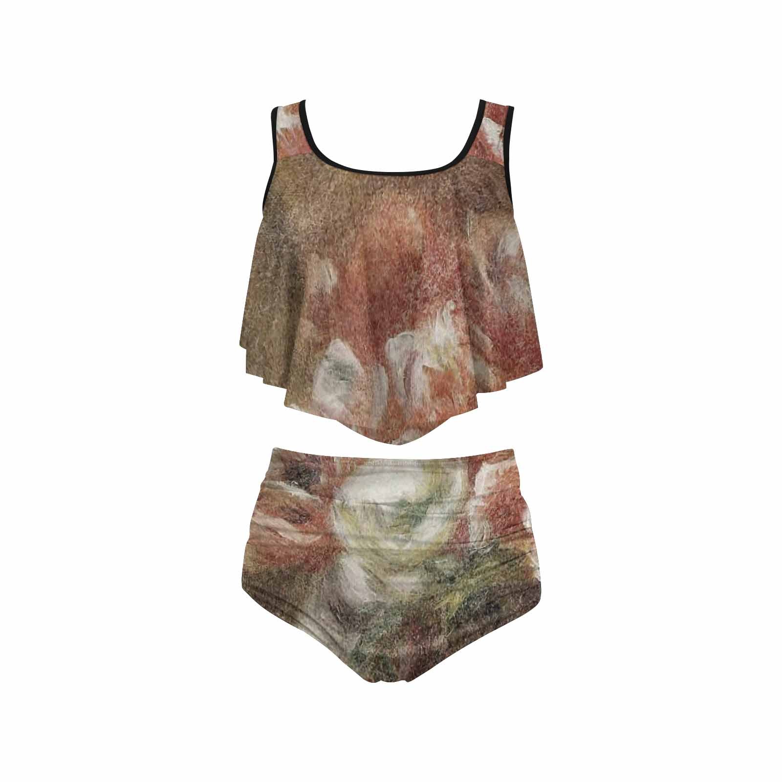 Vintage floral high waisted flounce top bikini, swim wear, Design 15