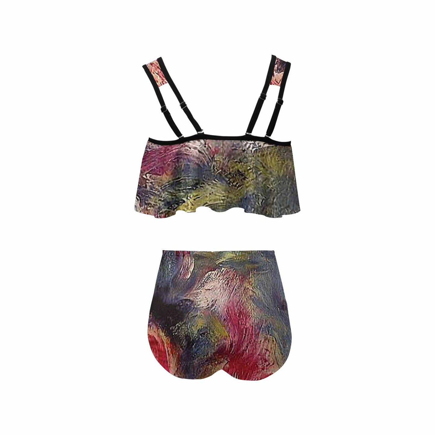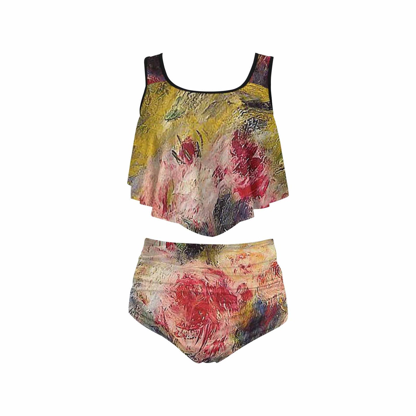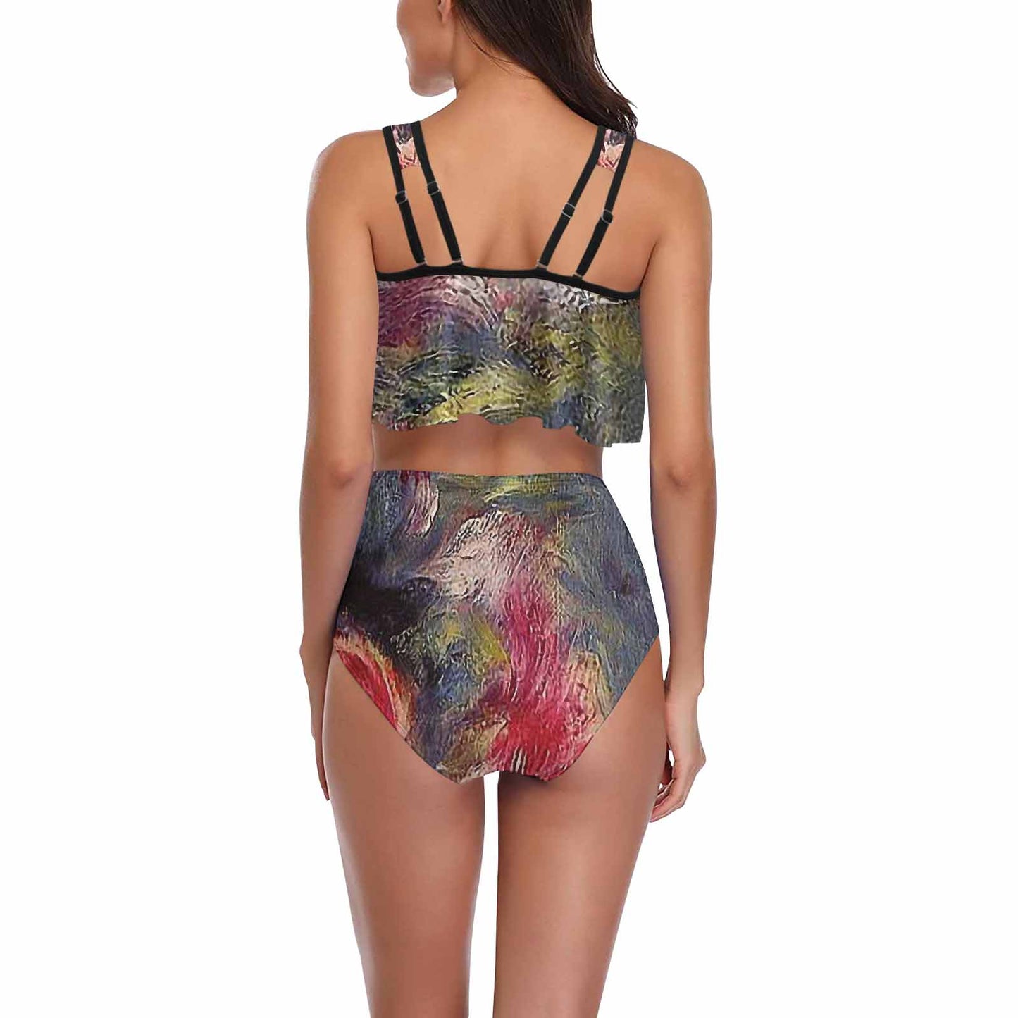 Vintage floral high waisted flounce top bikini, swim wear, Design 26