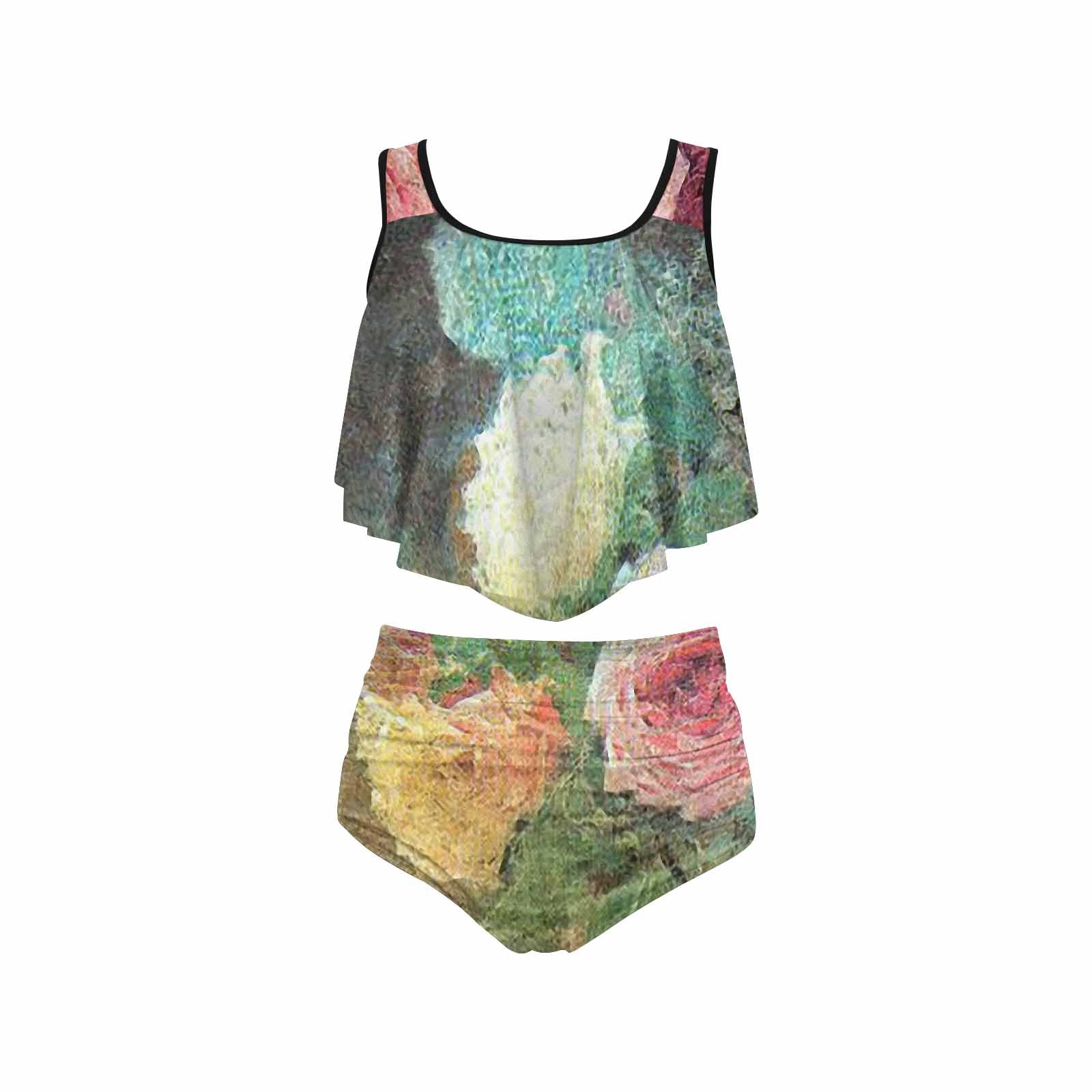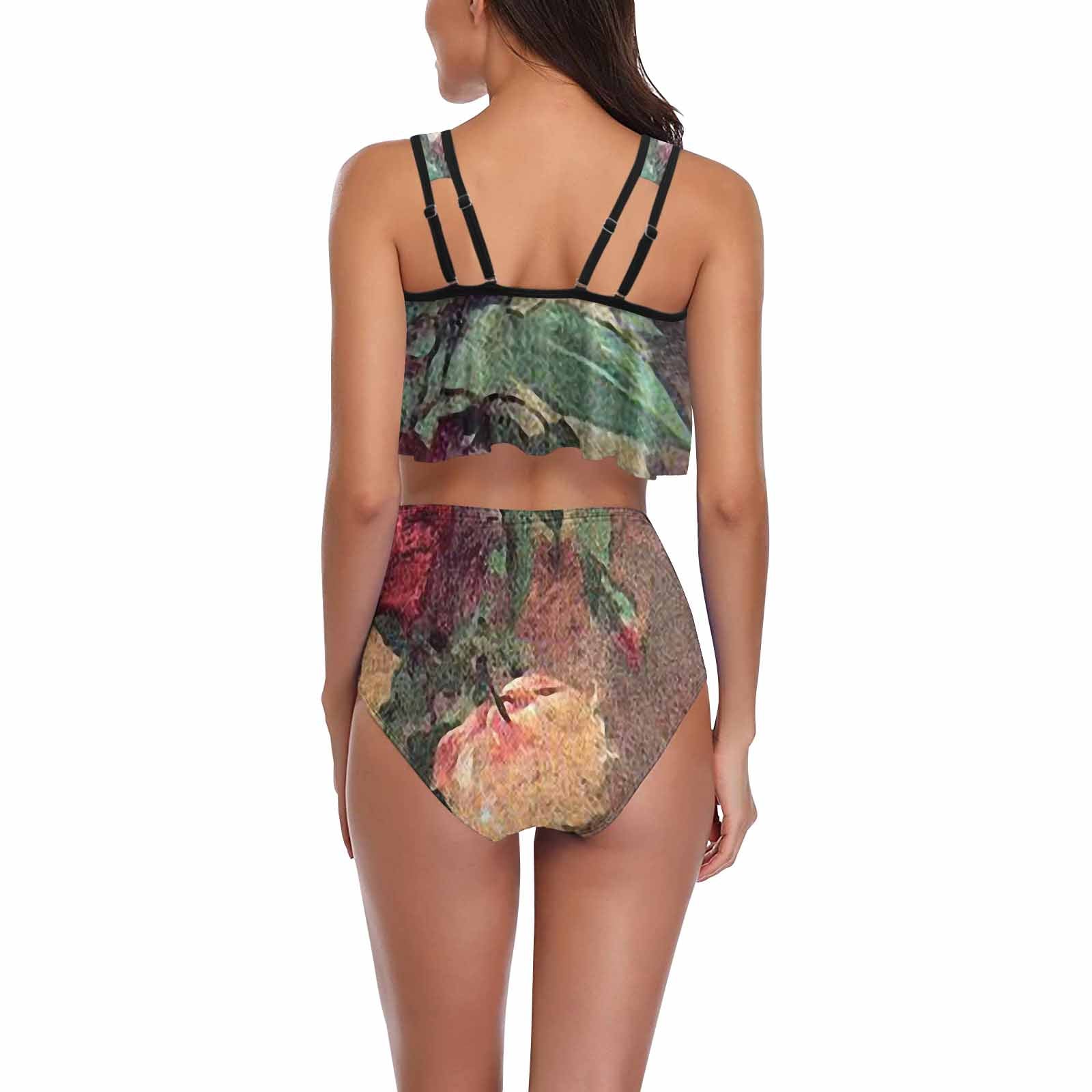 Vintage floral high waisted flounce top bikini, swim wear, Design 29