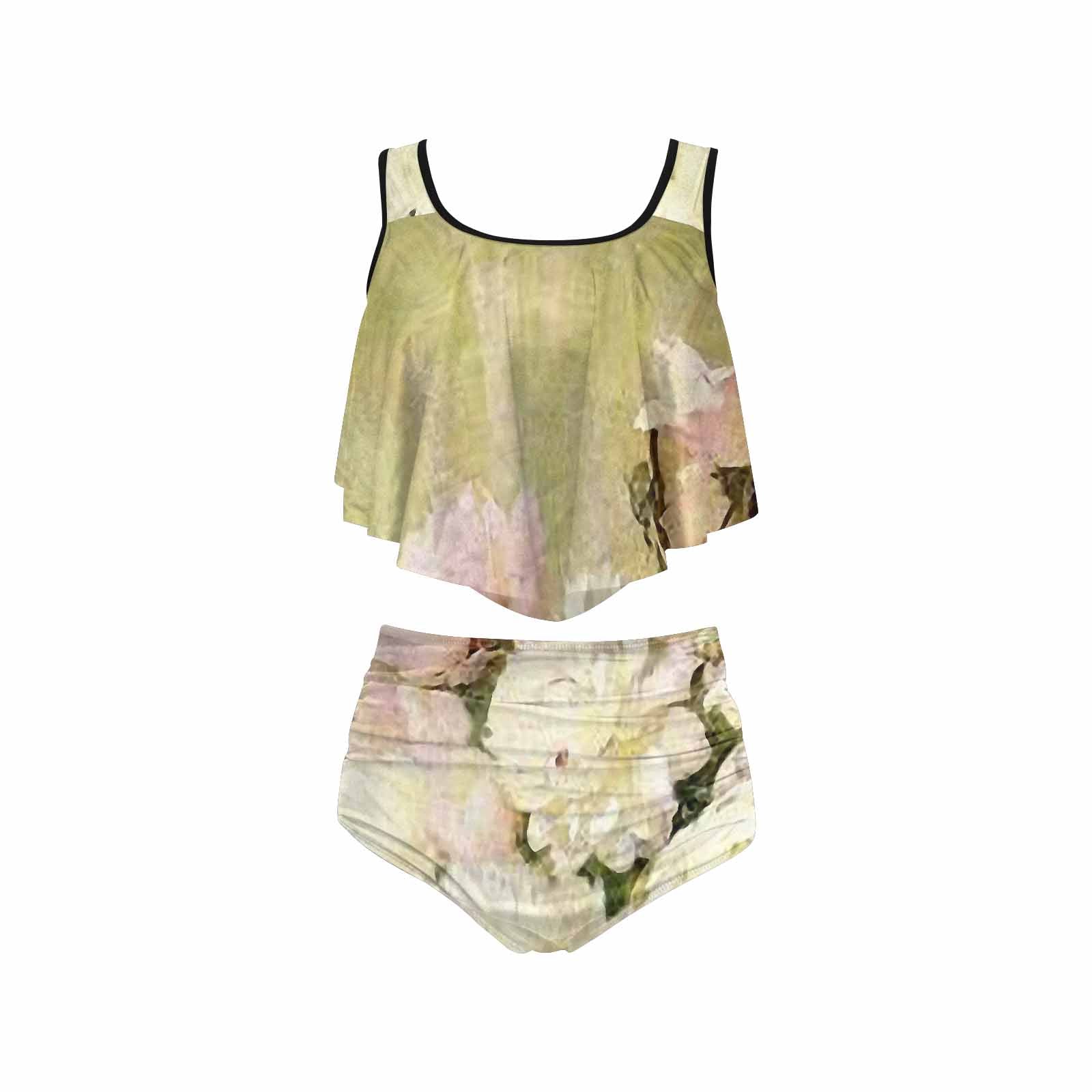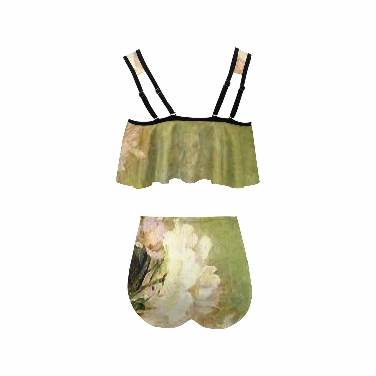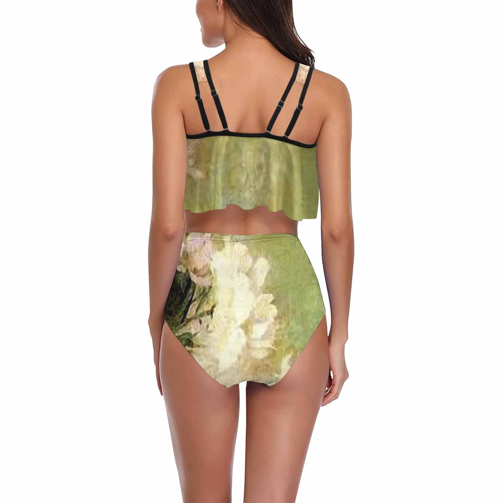 Vintage floral high waisted flounce top bikini, swim wear, Design 35