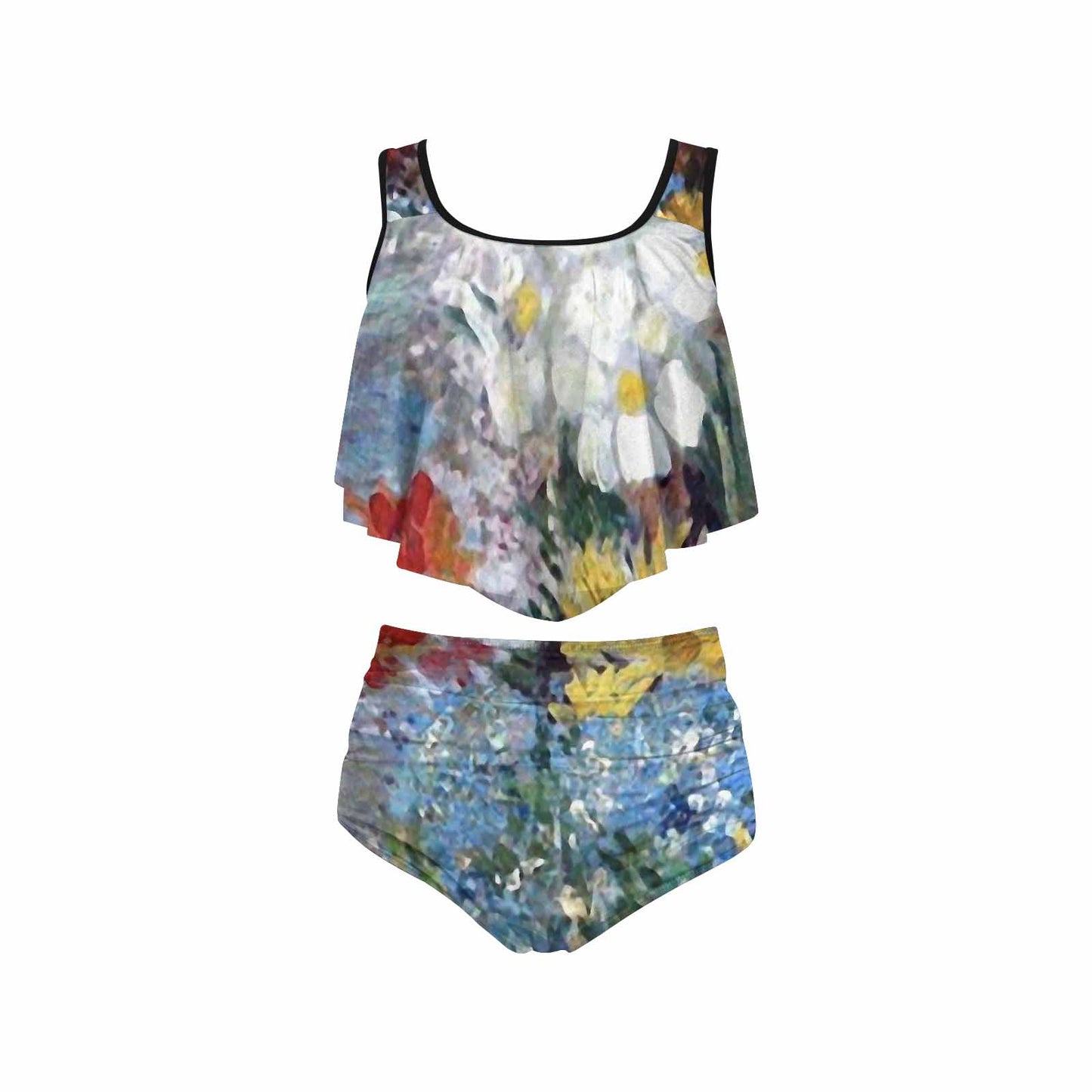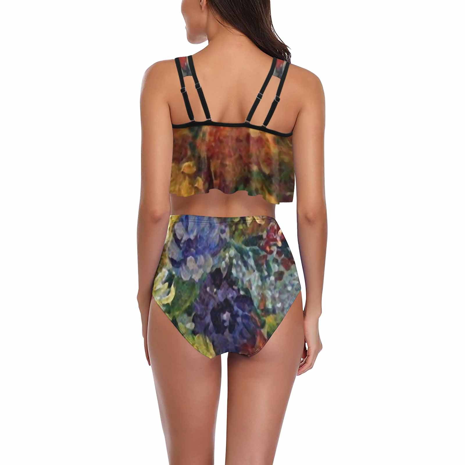 Vintage floral high waisted flounce top bikini, swim wear, Design 41