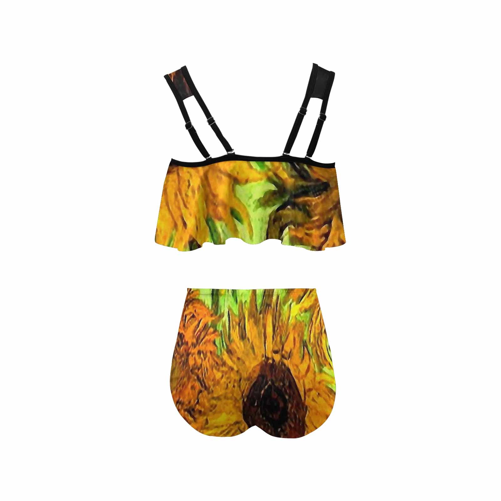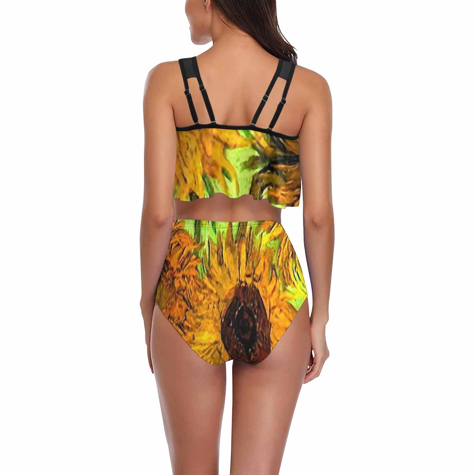 Vintage floral high waisted flounce top bikini, swim wear, Design 48