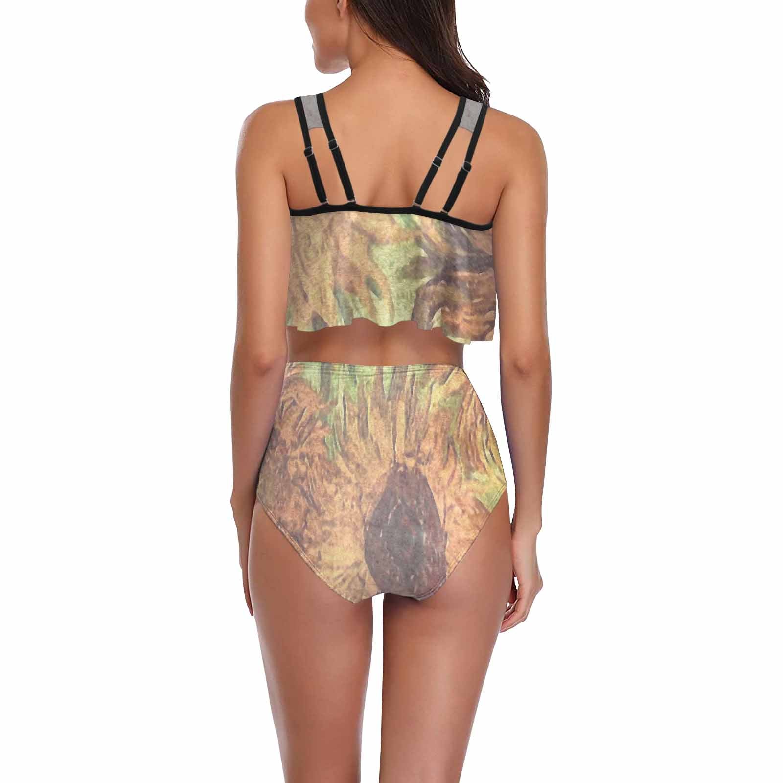 Vintage floral high waisted flounce top bikini, swim wear, Design 48xx