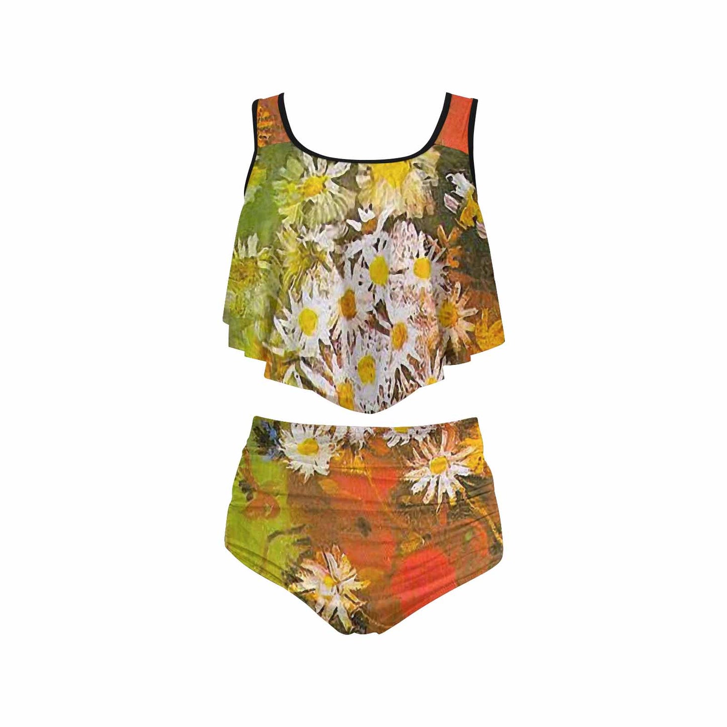Vintage floral high waisted flounce top bikini, swim wear, Design 60