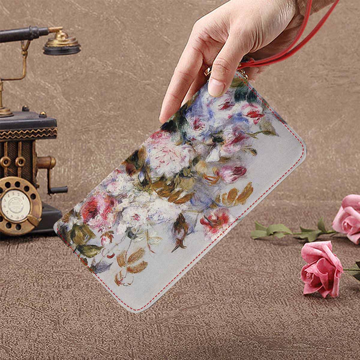 Vintage floral print, womens wallet, clutch purse, red trim, Design 12
