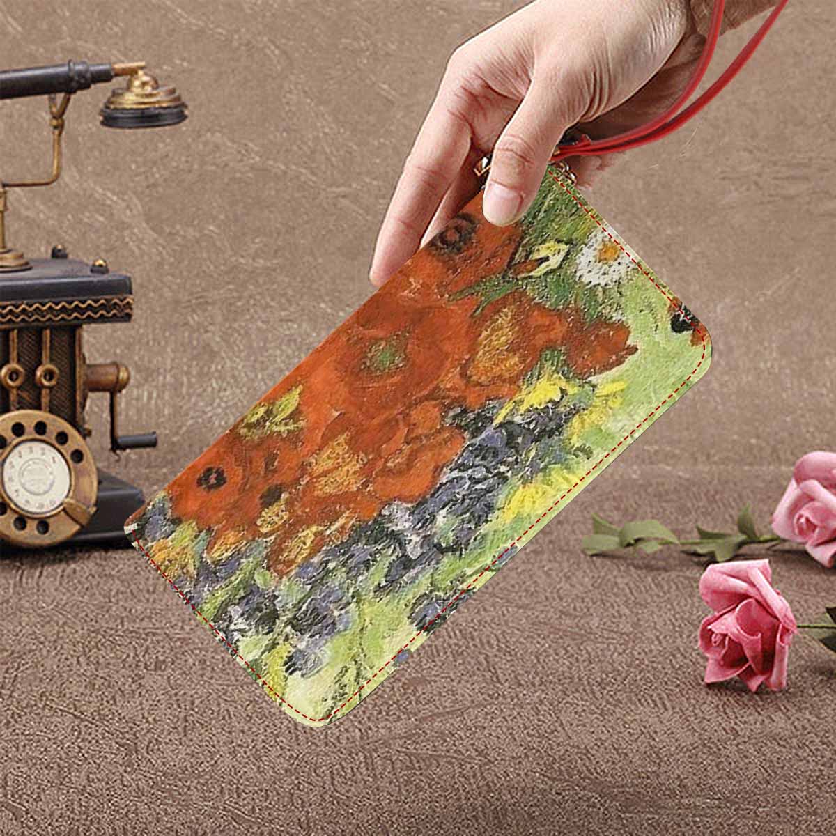 Vintage floral print, womens wallet, clutch purse, red trim, Design 56