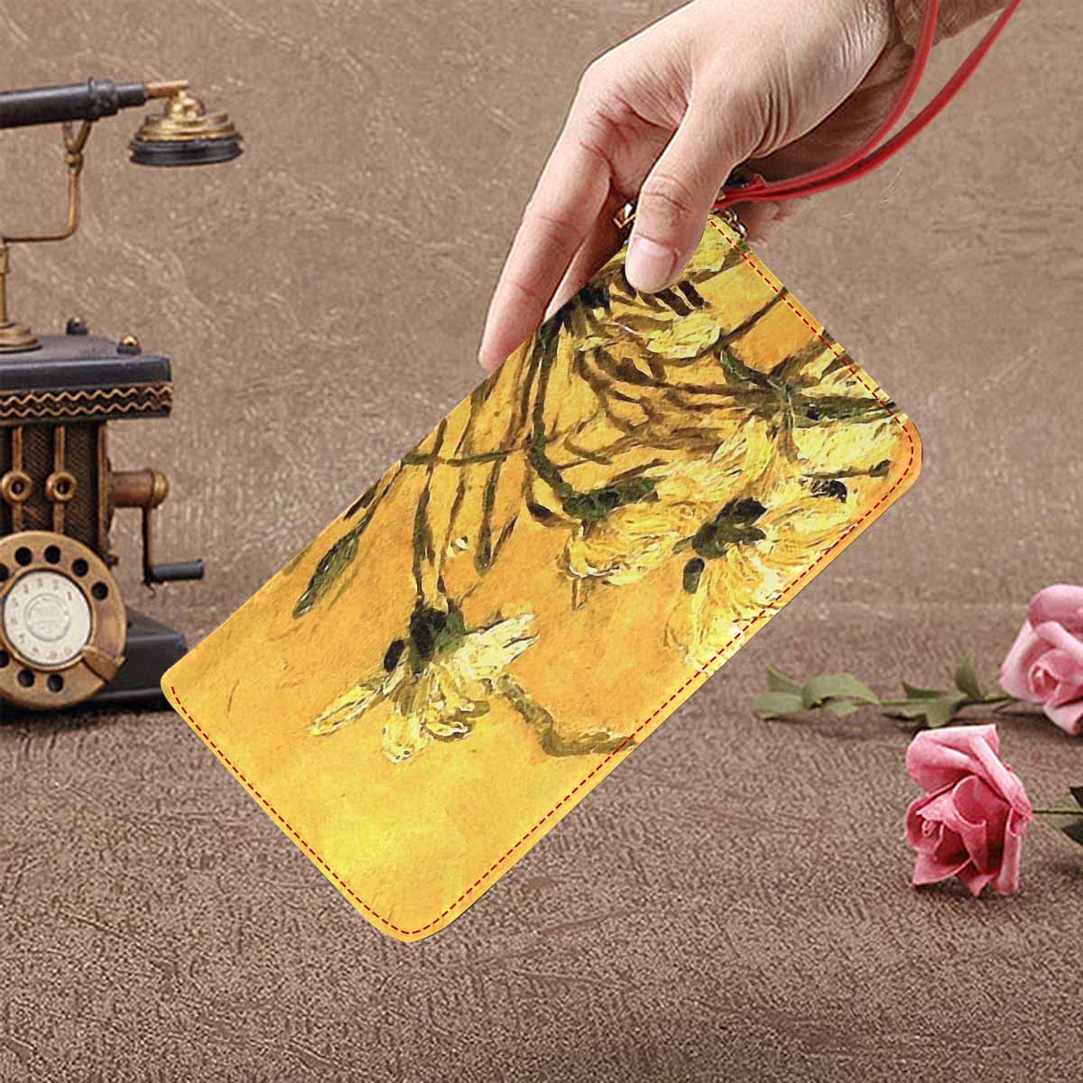 Vintage floral print, womens wallet, clutch purse, red trim, Design 61