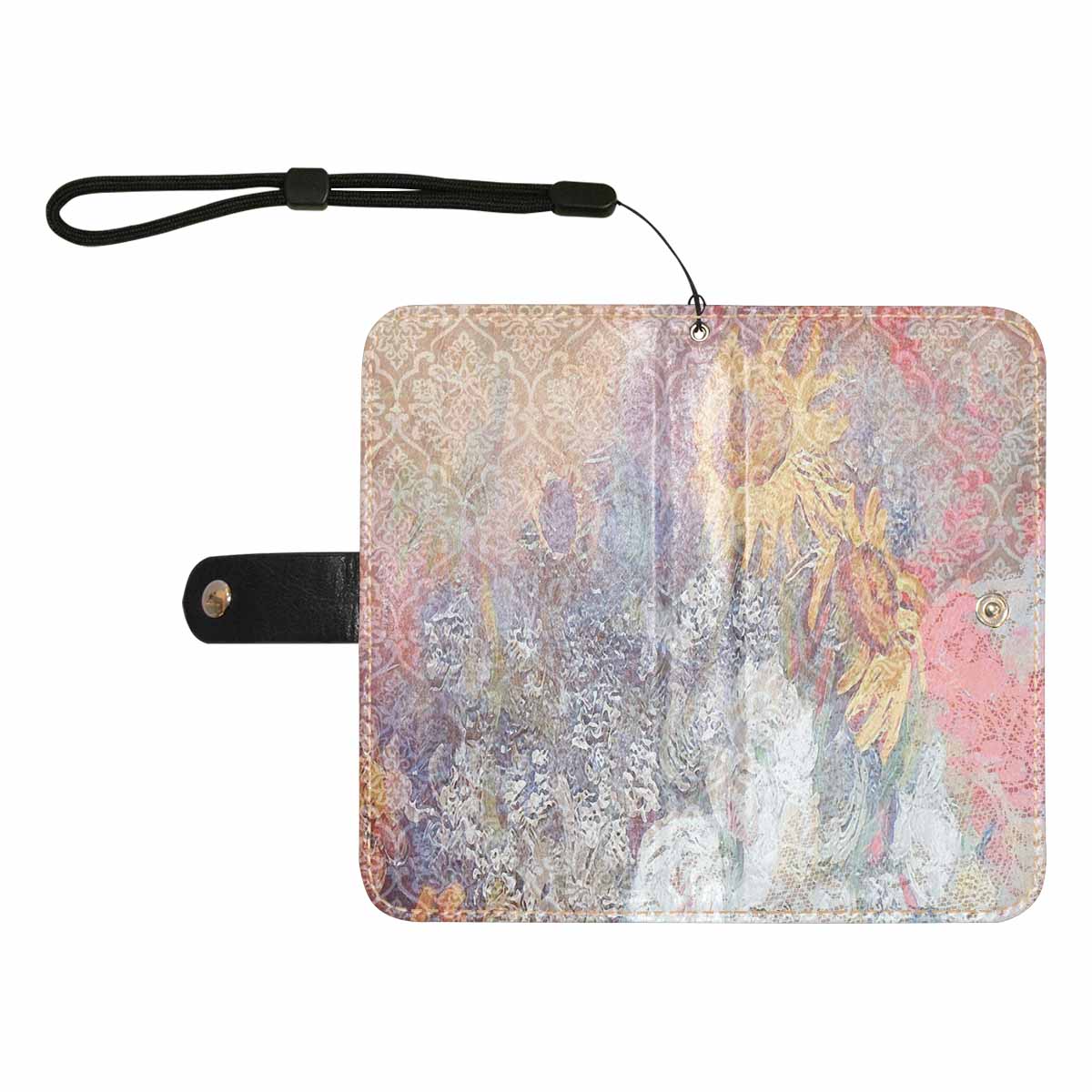 Vintage floral PU leather mobile phone purse, cell phone flip cover, Design 54x