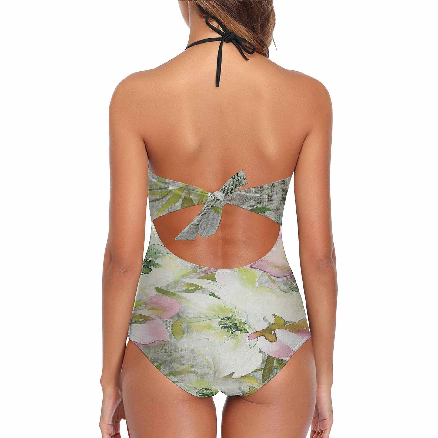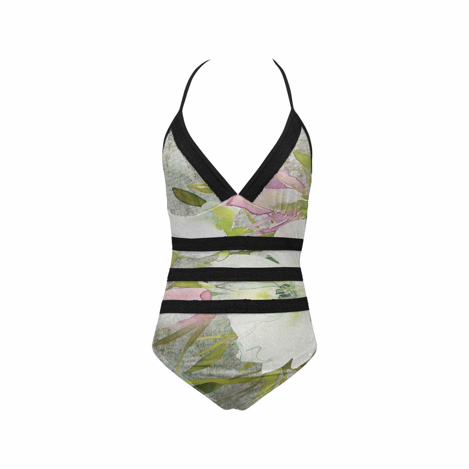 Vintage floral, vintage chest collar, one piece swim wear, Design 03