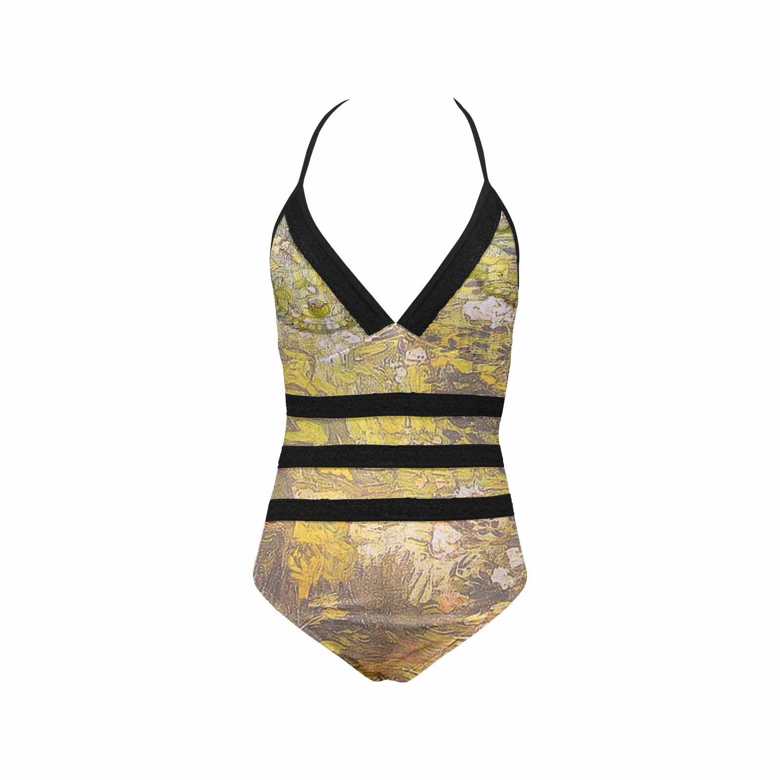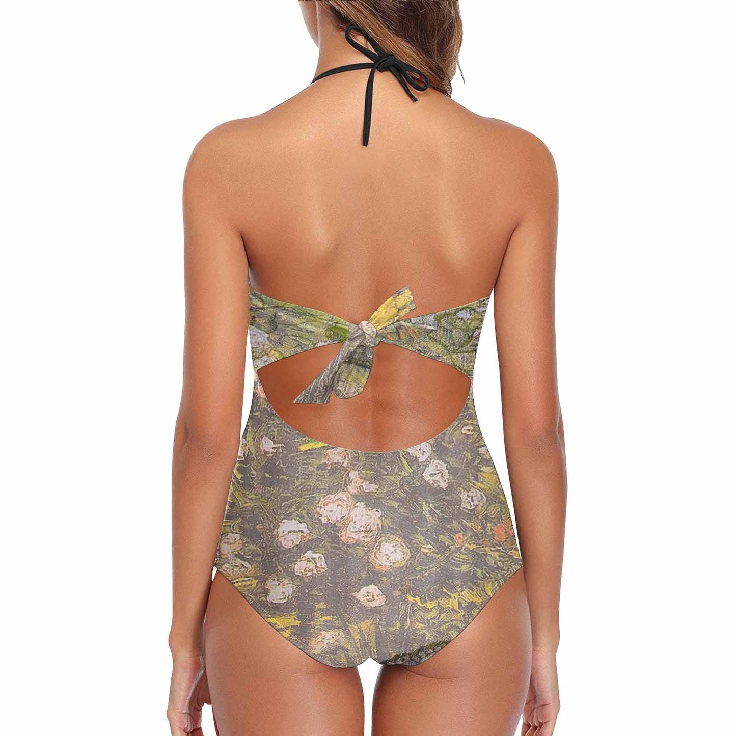 Vintage floral, vintage chest collar, one piece swim wear, Design 05x