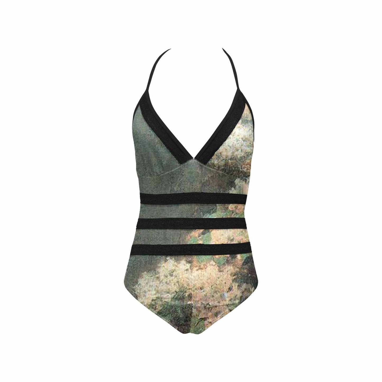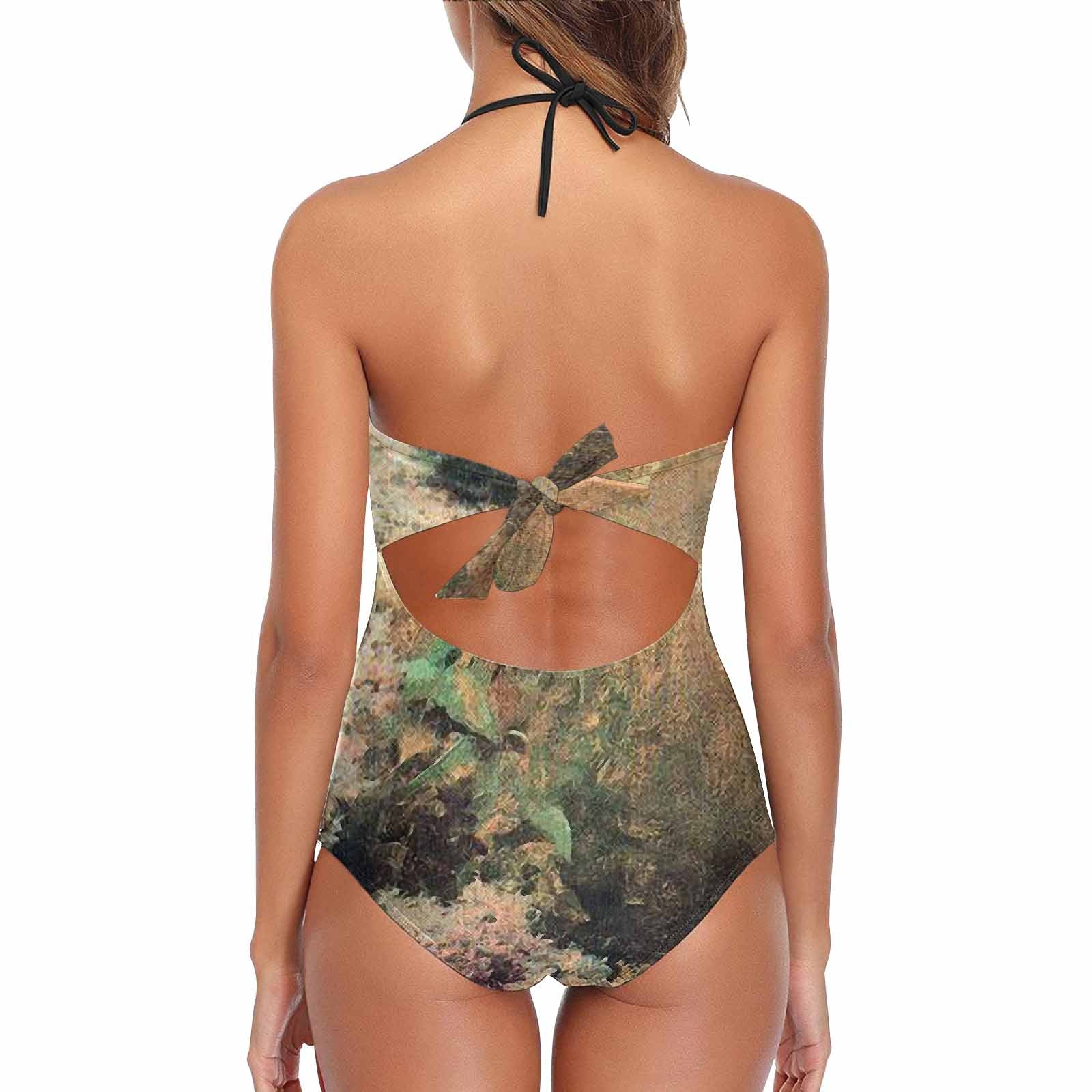 Vintage floral, vintage chest collar, one piece swim wear, Design 34