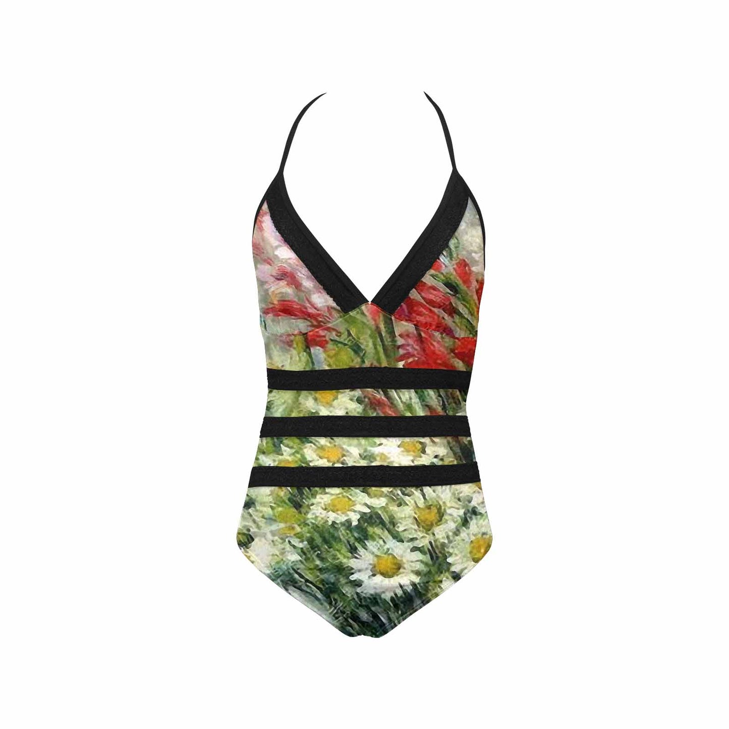 Vintage floral, vintage chest collar, one piece swim wear, Design 43