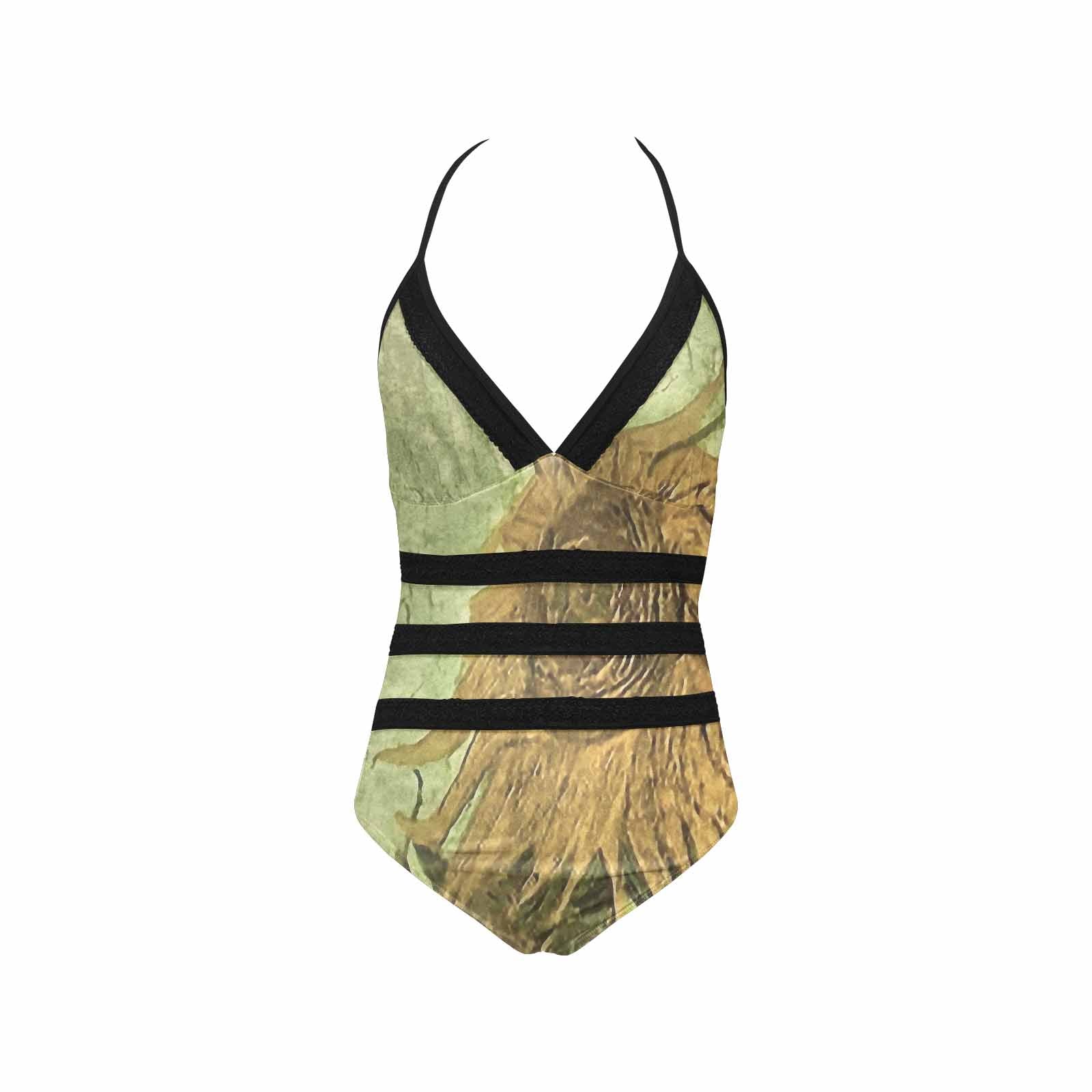 Vintage floral, vintage chest collar, one piece swim wear, Design 48x