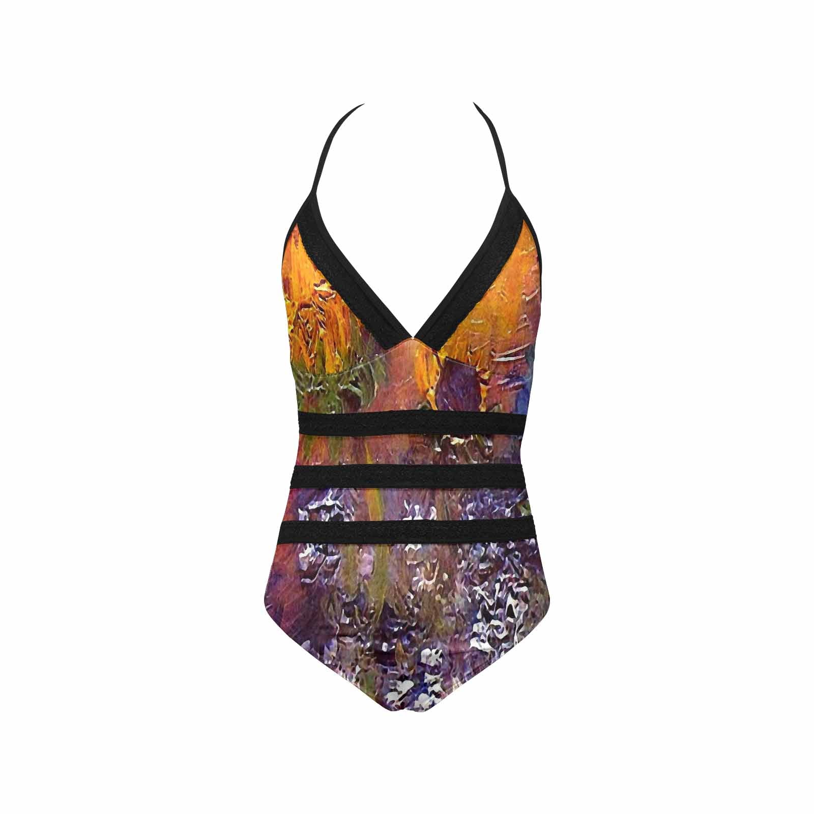 Vintage floral, vintage chest collar, one piece swim wear, Design 54